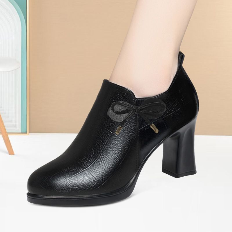 洋气防水台粗跟皮鞋 秋季 时尚 中年低帮深口单鞋 百搭耐磨旗袍走秀鞋