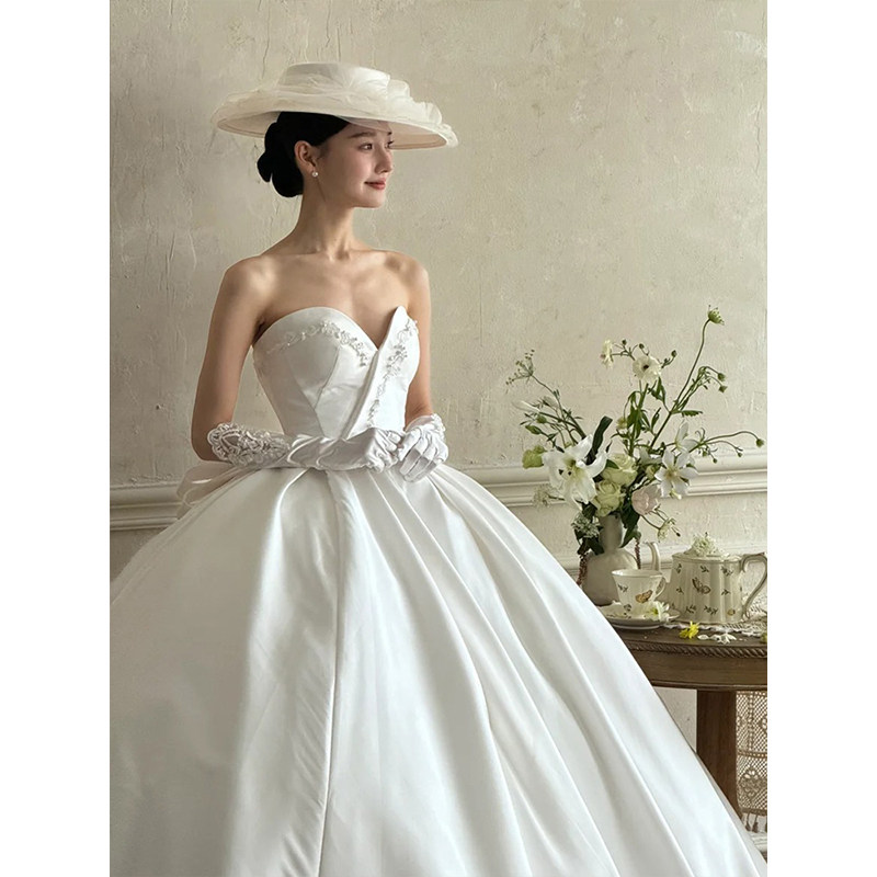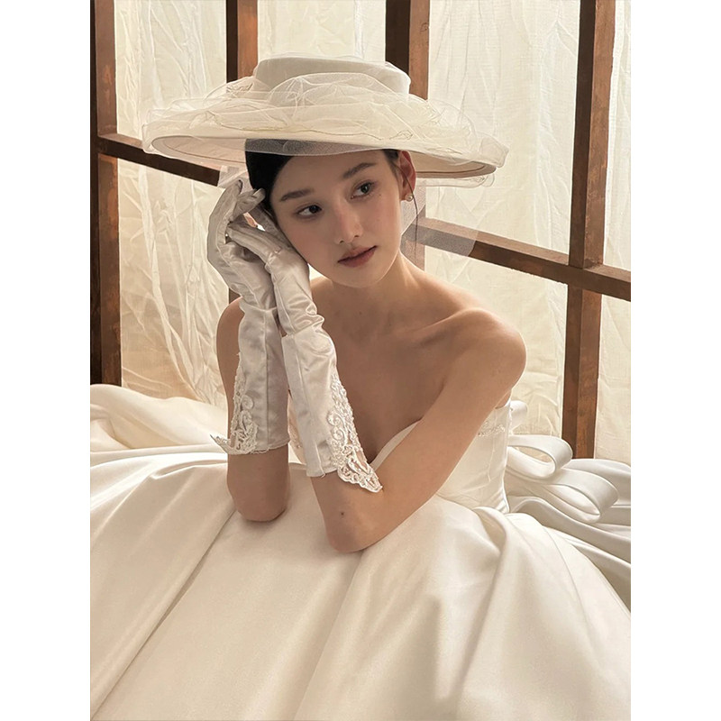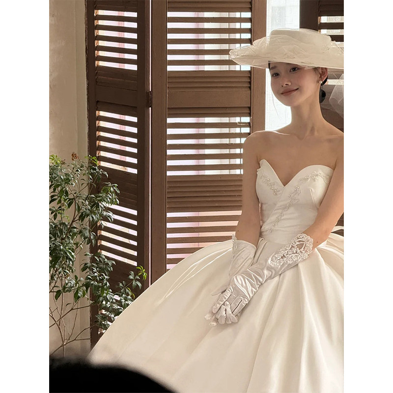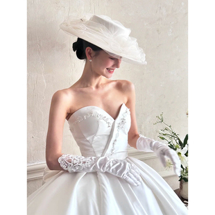 白色长款 赫本风复古礼服婚礼高级感 缎面手套婚纱新娘拍照道具法式