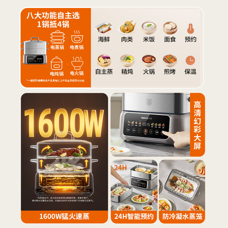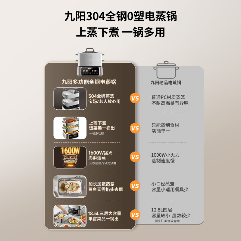 九阳电蒸锅多功能家用多层全不锈钢蒸煮炖一体锅2025新款 旗舰正品