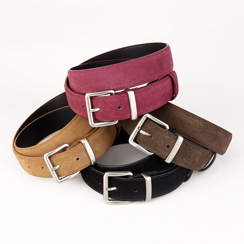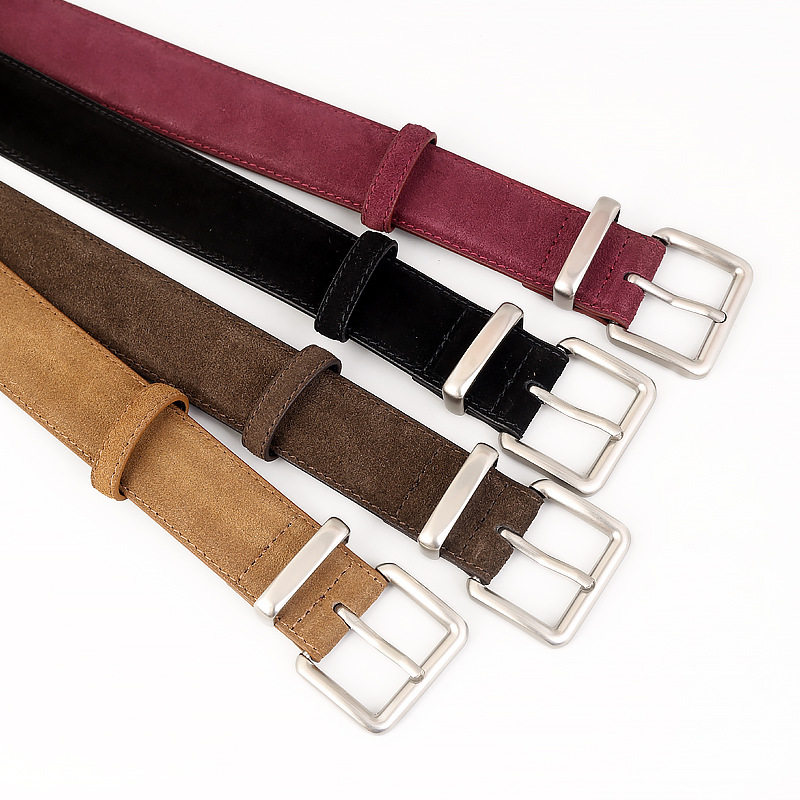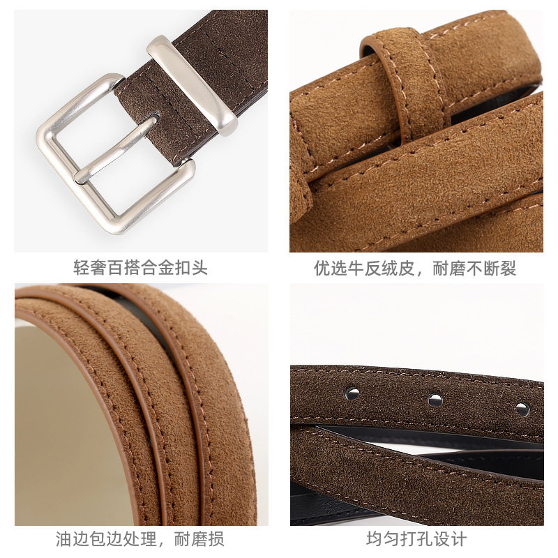 2025新款 皮带女棕色麂皮腰带反牛绒皮女士腰带简约针扣配牛仔腰带