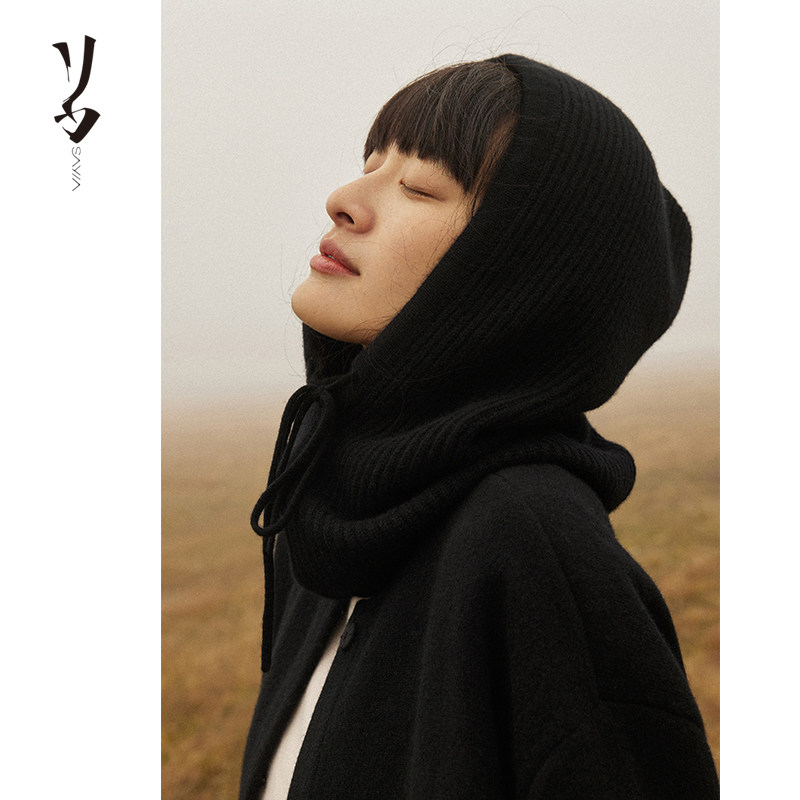 feytiy 含羊毛时髦复古巴拉克拉法帽秋冬保暖帽子围巾一体韩国ins