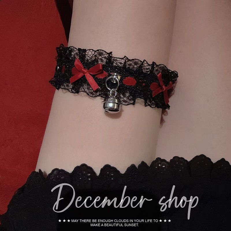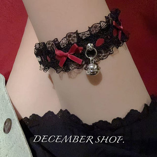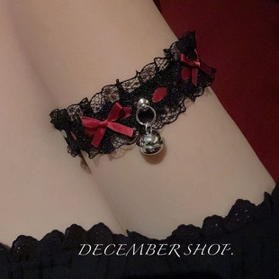 圣诞Lolita铃铛蕾丝蝴蝶结大腿环带女仆皮革铃铛cos拍摄甜美脚链