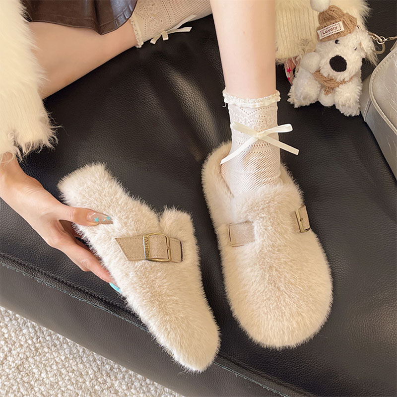 懒人一脚蹬包头拖鞋 骆驼勃肯鞋 真皮加绒单鞋 2025新款 穆勒半拖 女鞋