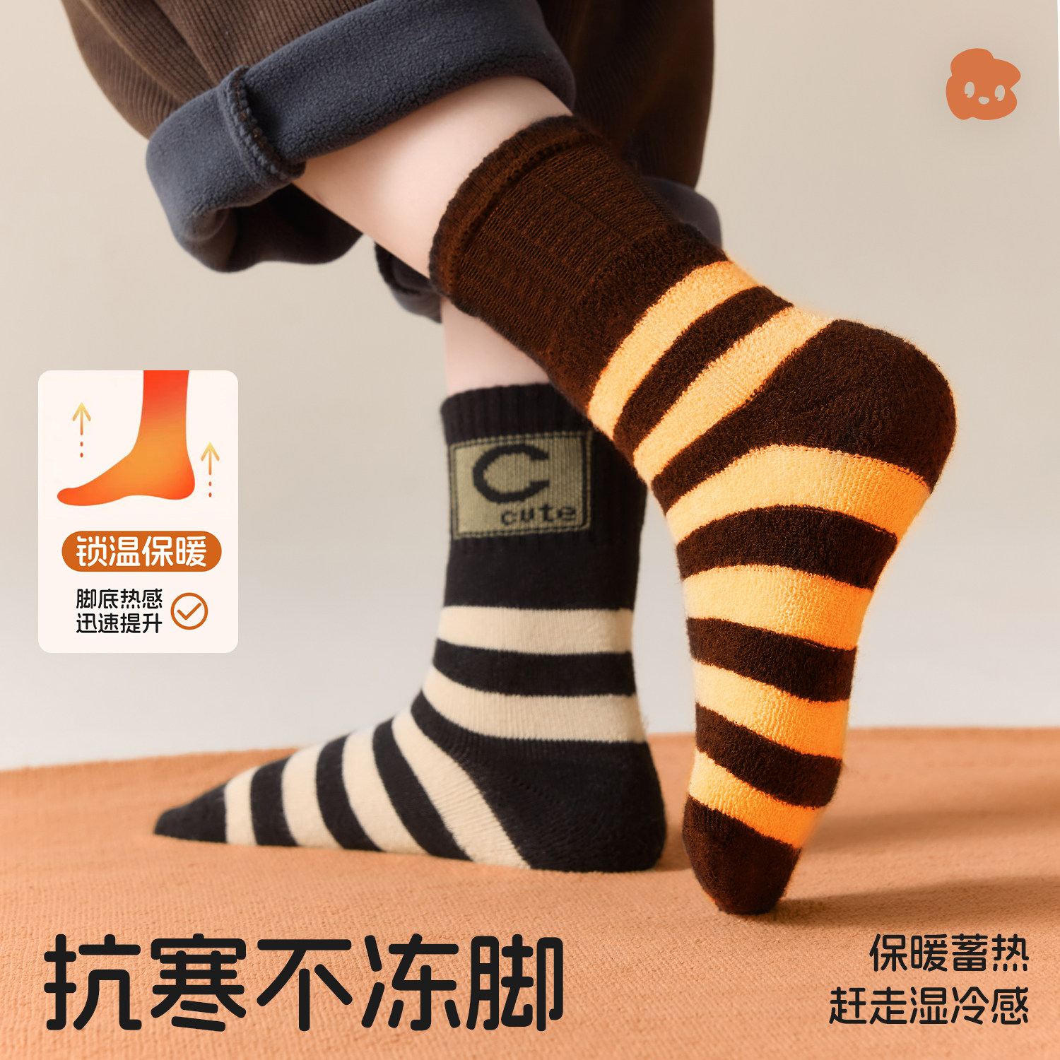 儿童袜子冬季 中童抗寒毛巾袜中筒棉袜 加厚保暖毛圈男童女童秋冬款