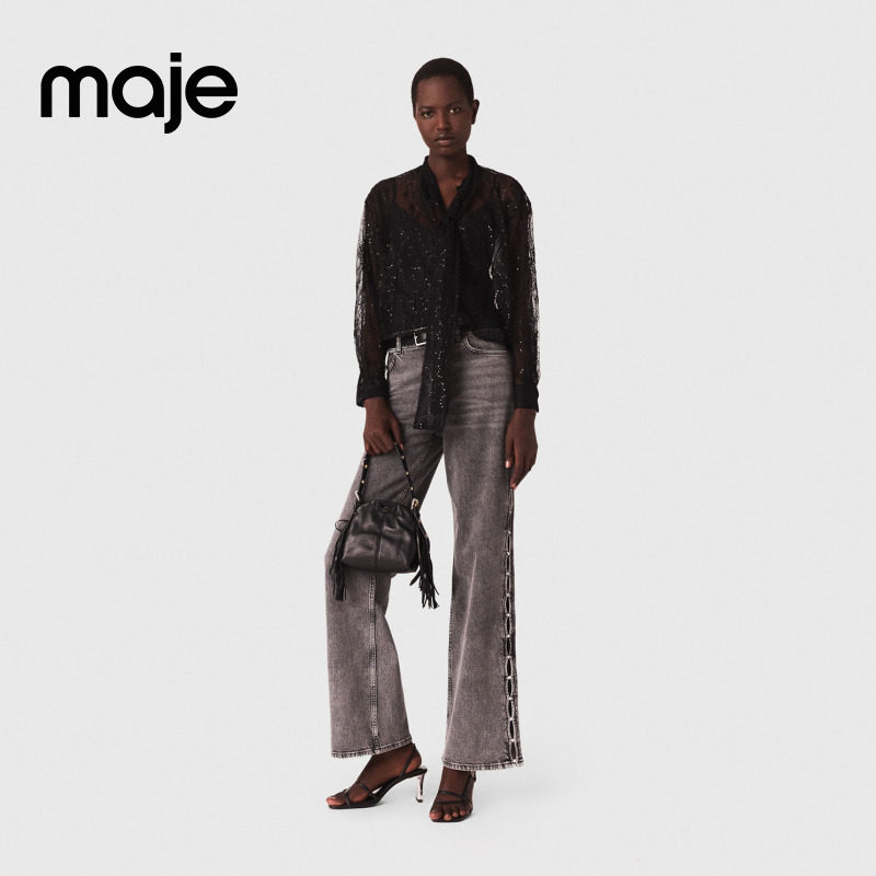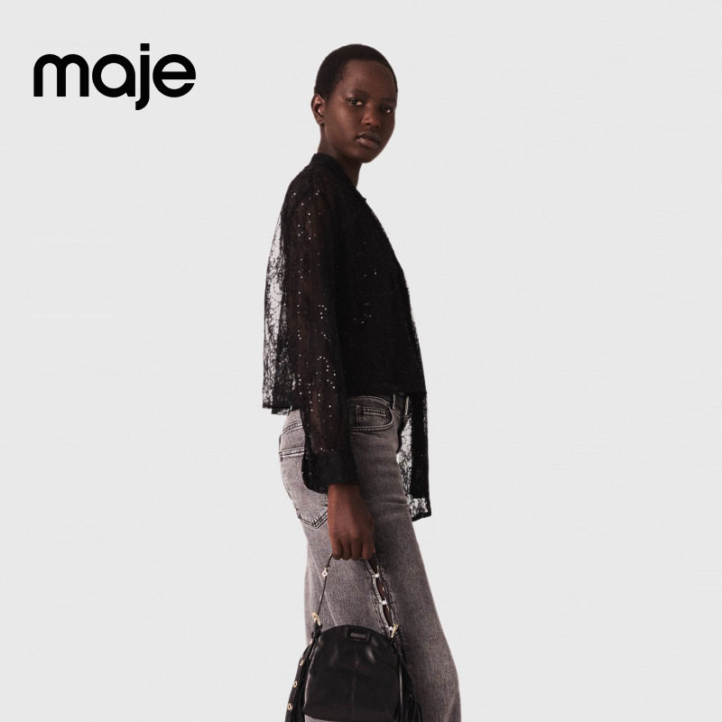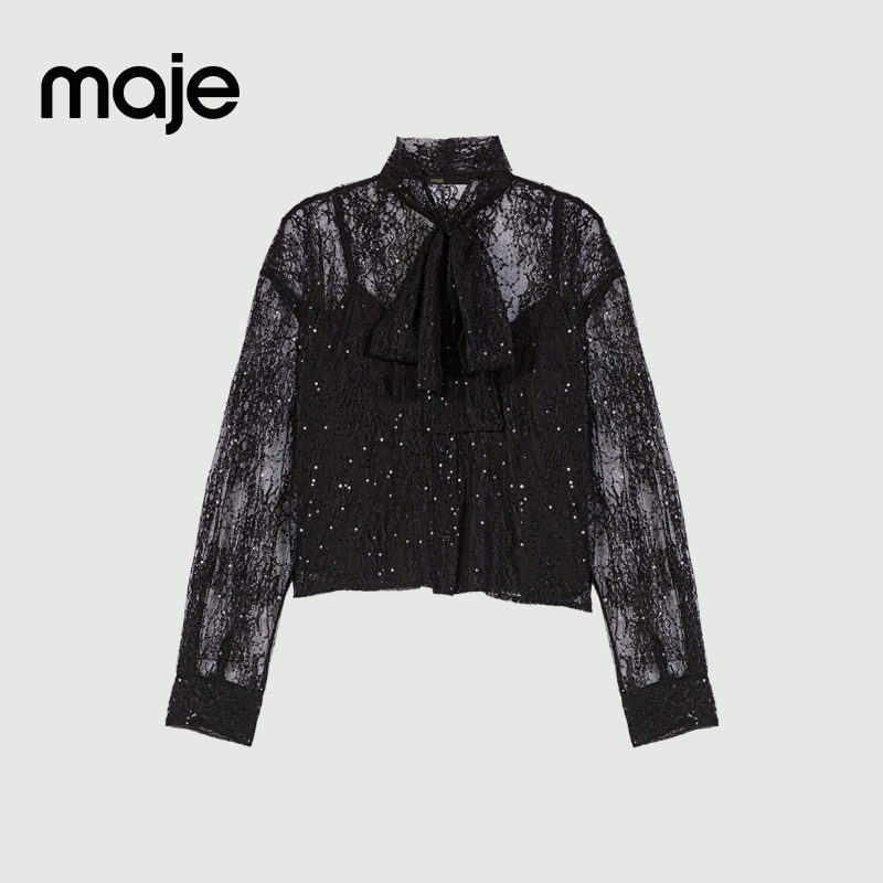 女装 新款 法式 时尚 季 亮片蕾丝可拆卸吊带衬衫 末7折Maje2025秋季