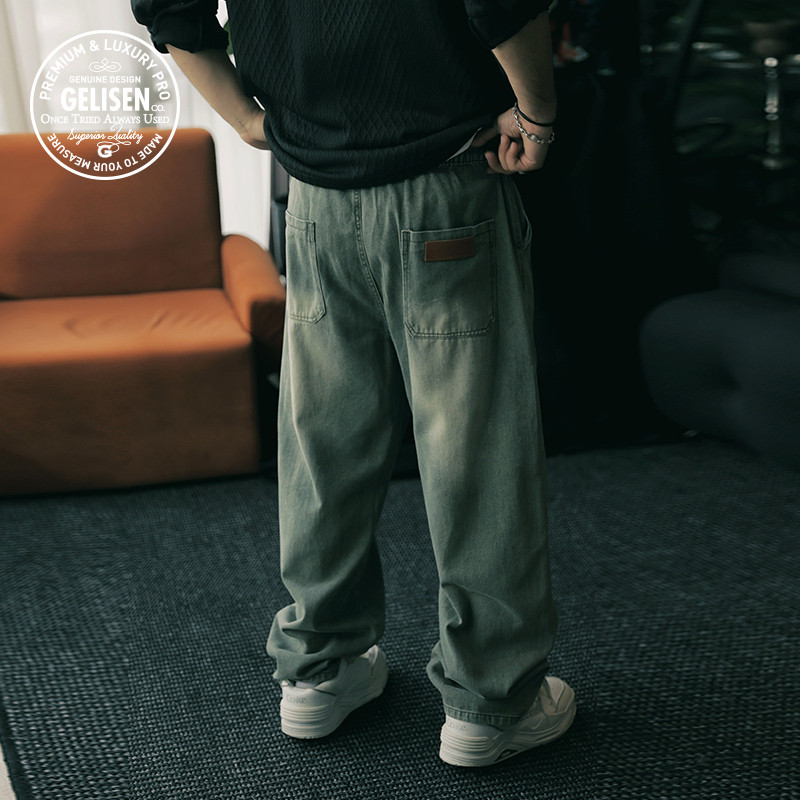 阔腿做旧结构休闲长牛仔裤 GELISEN格里森新款 街头直筒宽松大码