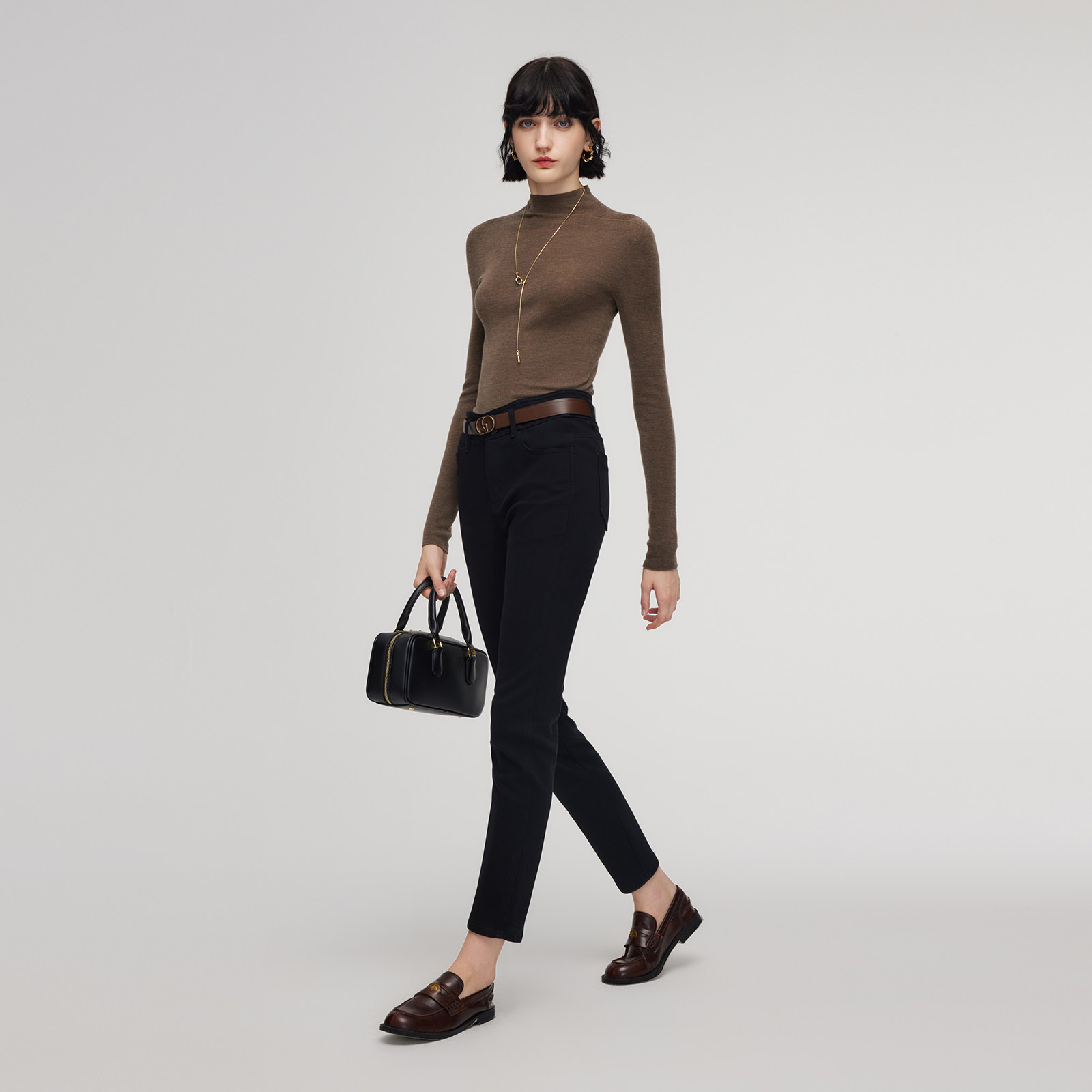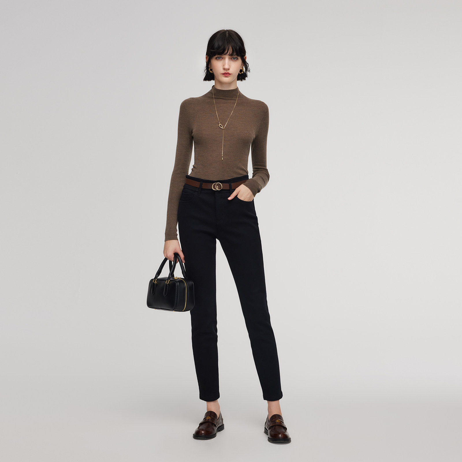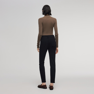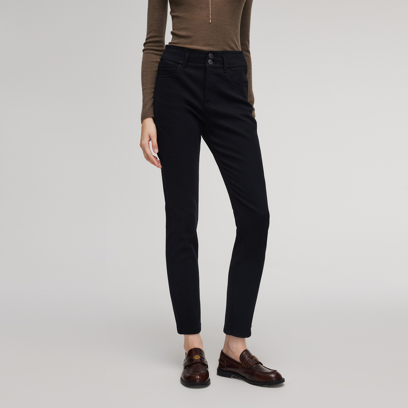 靴裤 女秋冬高腰紧身小脚裤 歌莉娅黑色抓绒牛仔裤 显瘦长裤 舒心