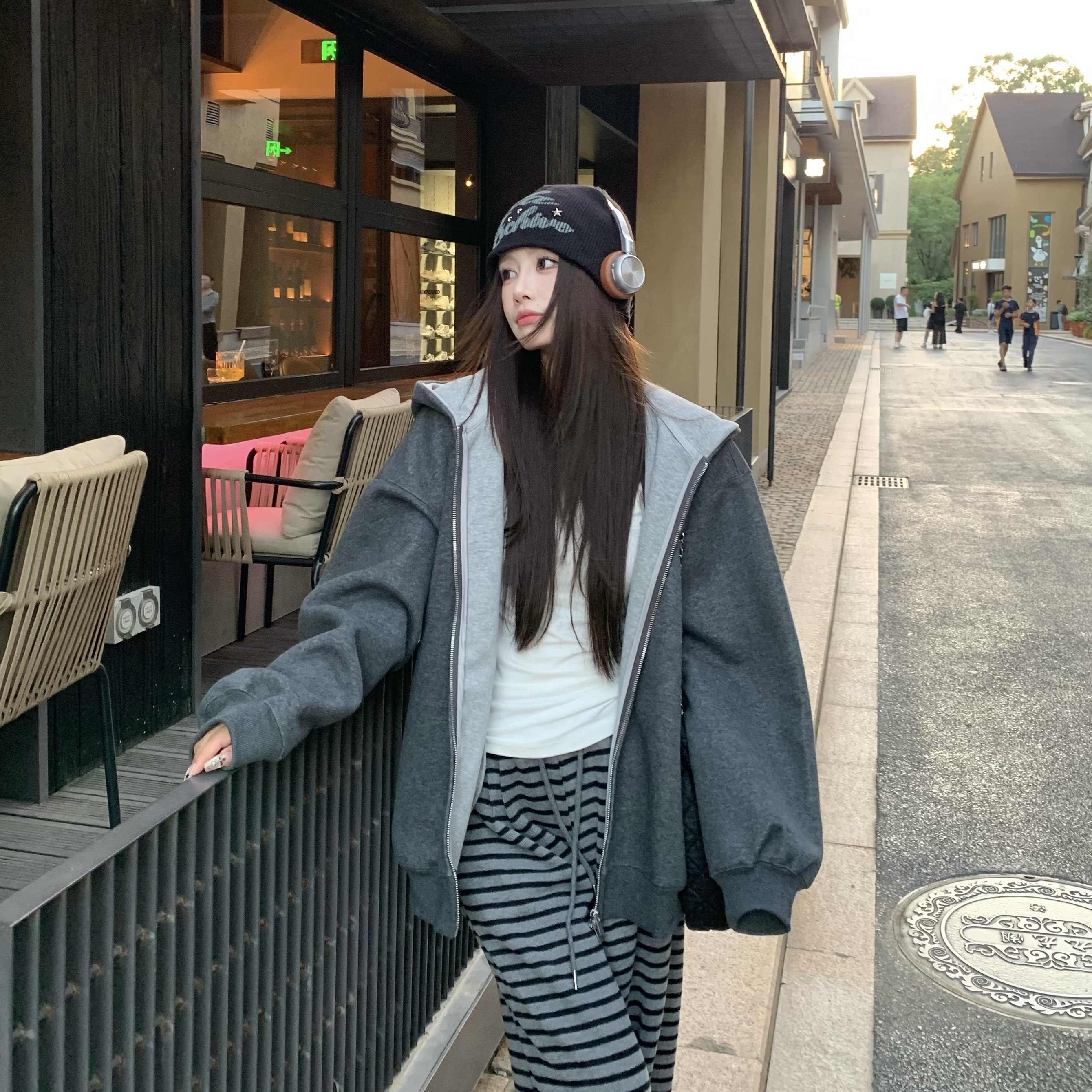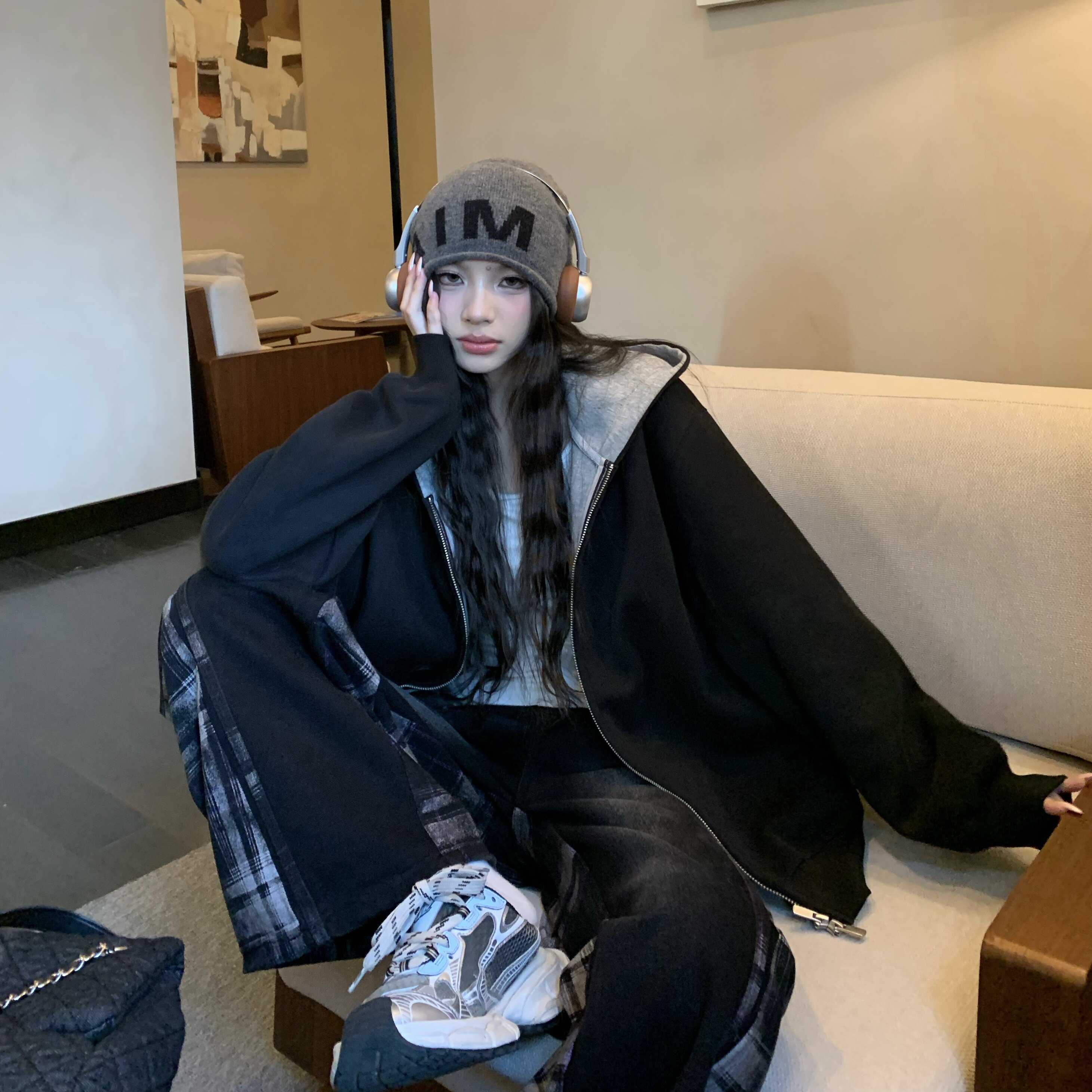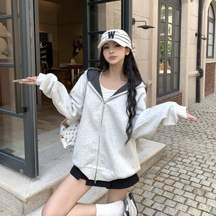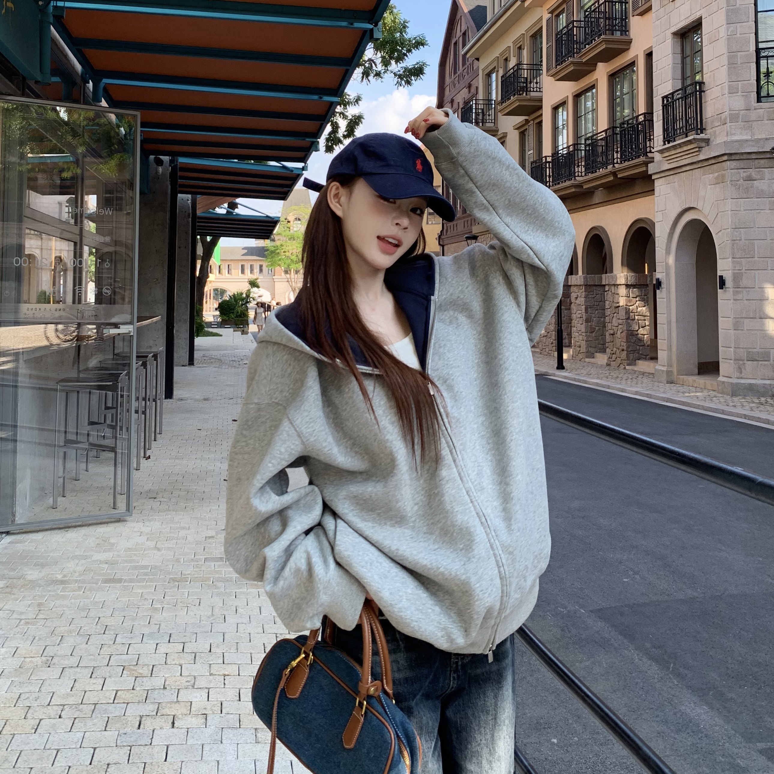 外套 慵懒风休闲宽松开衫 3MER哦哦三妹重磅撞色连帽卫衣女秋季 新款