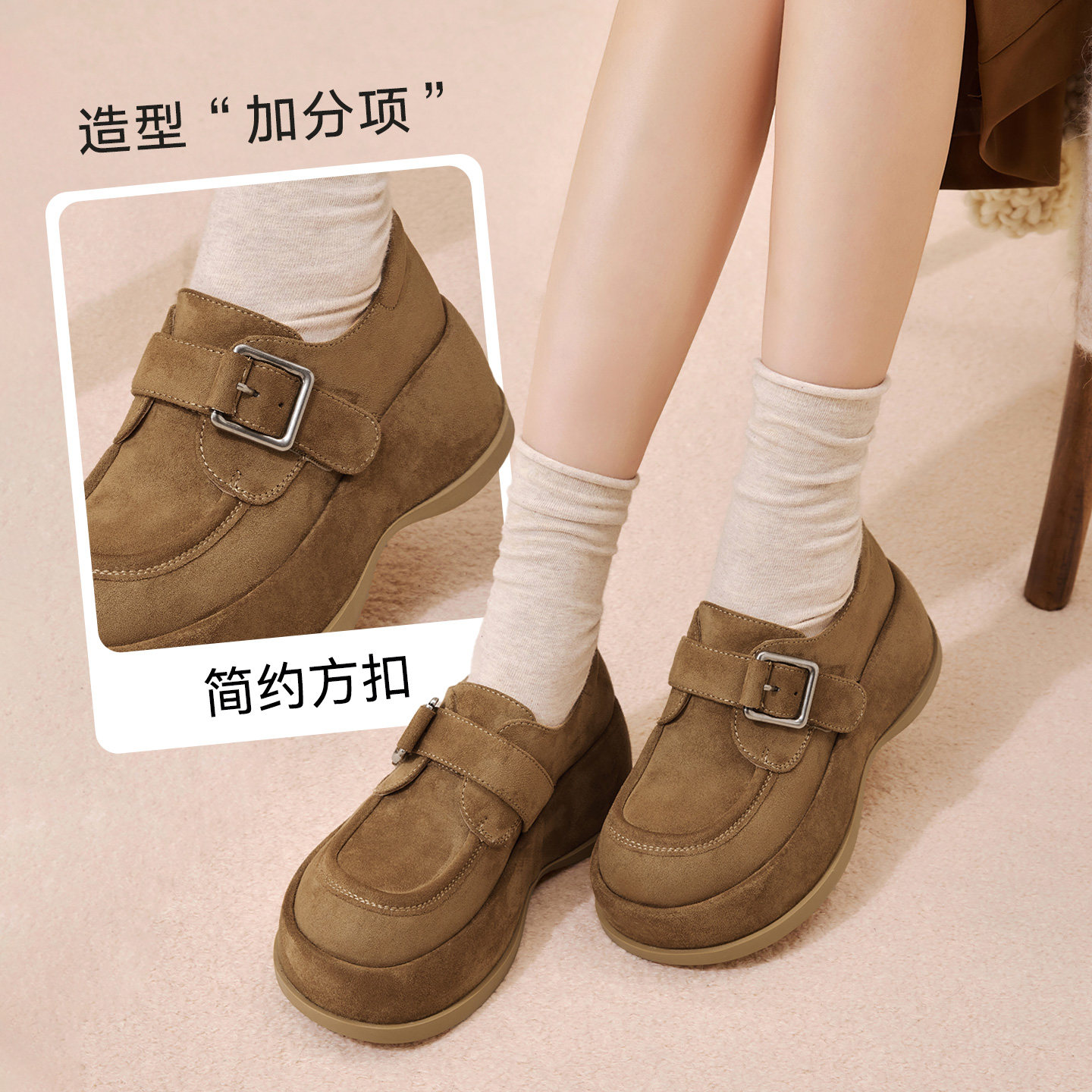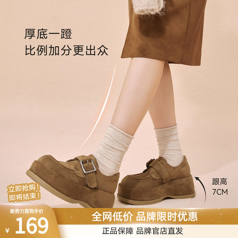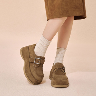 厚底增高女免系带懒人单鞋 复古勃肯鞋 CV252AM6 新款 百思图2026春季