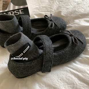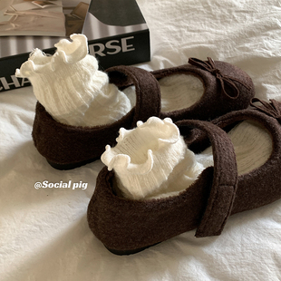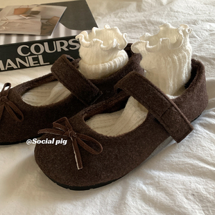 内增高气质浅口单鞋 2025秋冬新款 子 小香风毛呢加绒玛丽珍女鞋 法式