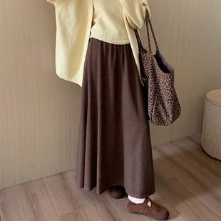 百搭休闲气质半身长裙 韩版 话里高腰显瘦羊绒A字半裙2025秋季 新款