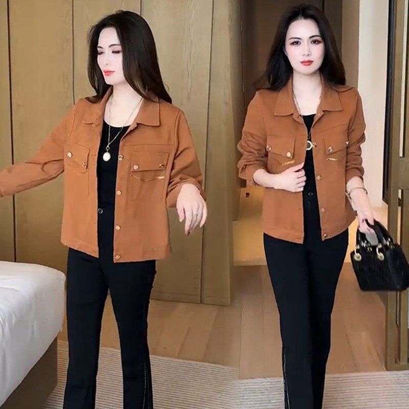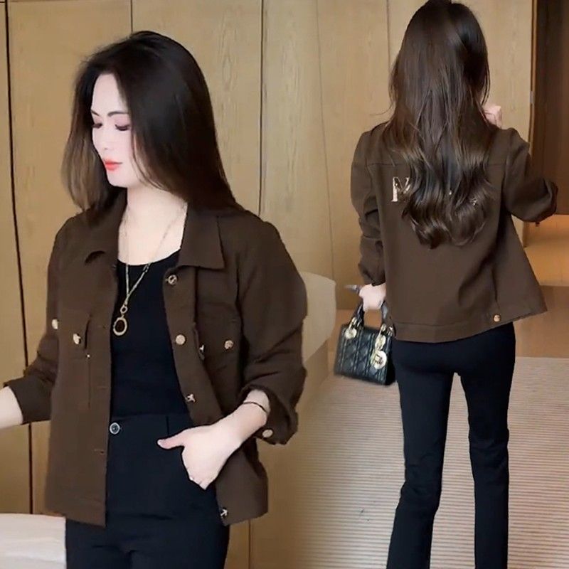 2025春秋翻领洋气短款 轻薄妈妈棉袄短外套 棉衣菱格中青年棉服修身