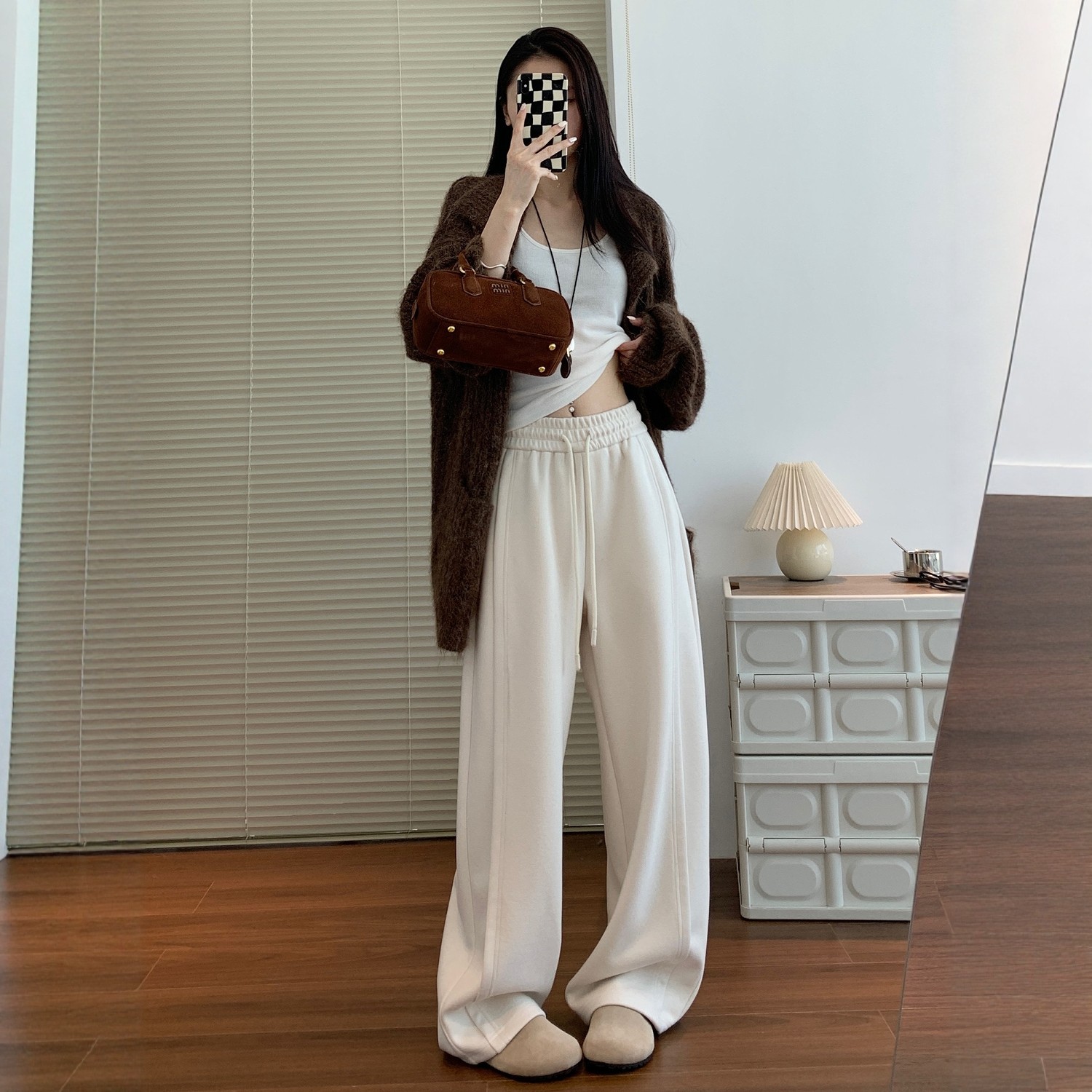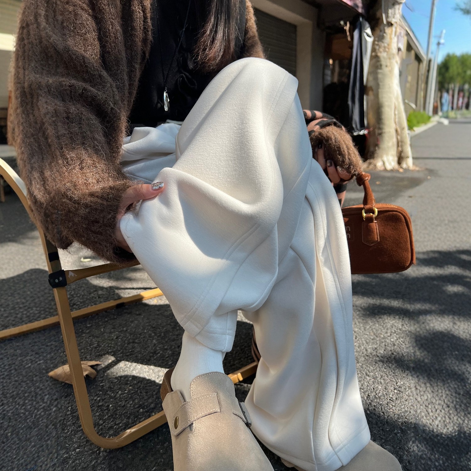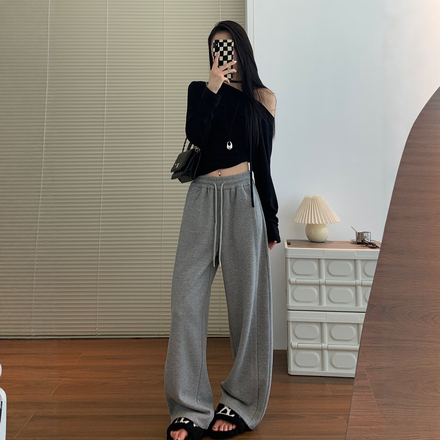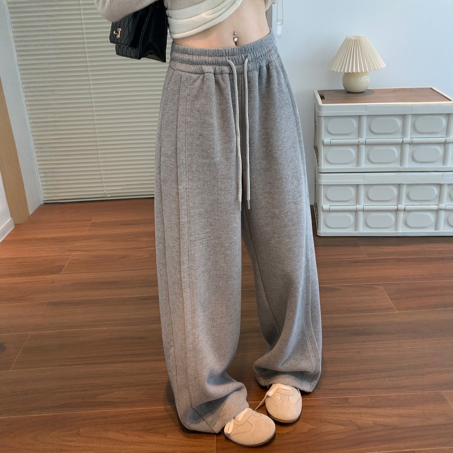 高腰垂感运动裤 灰色阔腿裤 宽松显瘦羊毛糯米卫裤 2025新款 女秋冬季