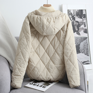ins日系轻薄棉衣2025秋冬休闲情侣款 男女菱形格连帽百搭棉服外套