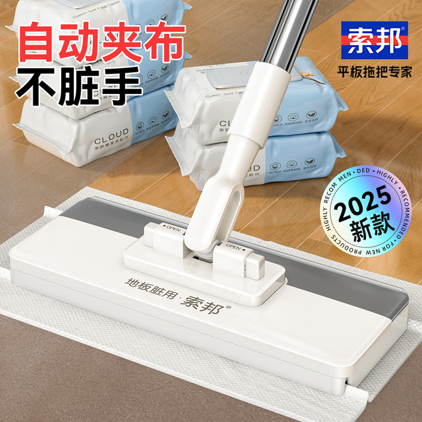 大卫平板拖把懒人夹布阔面板拖把2025新款 家用洗脸巾拖布干湿两用