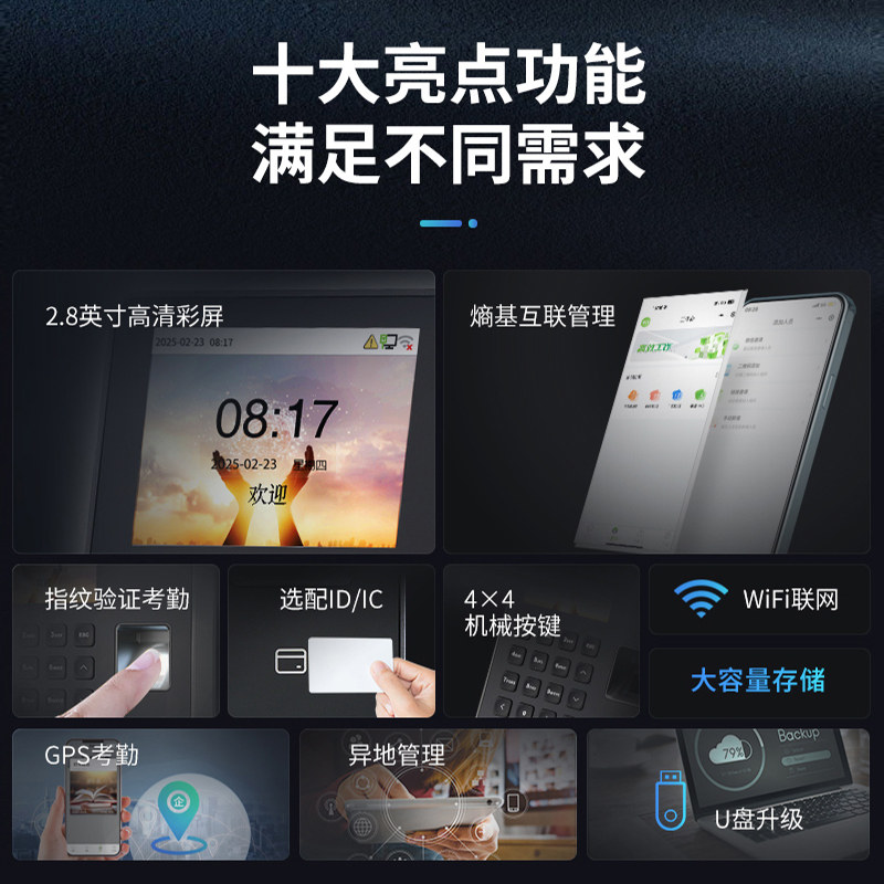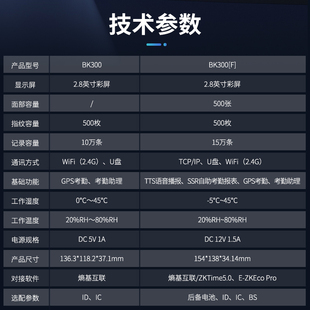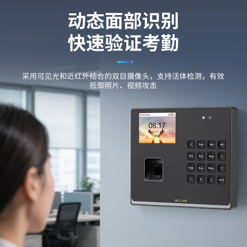 ZKTeco熵基科技BK300F指纹人脸识别员工打卡考勤机上班签到打卡机智能公司上下班打卡器刷脸云考勤门禁一体机