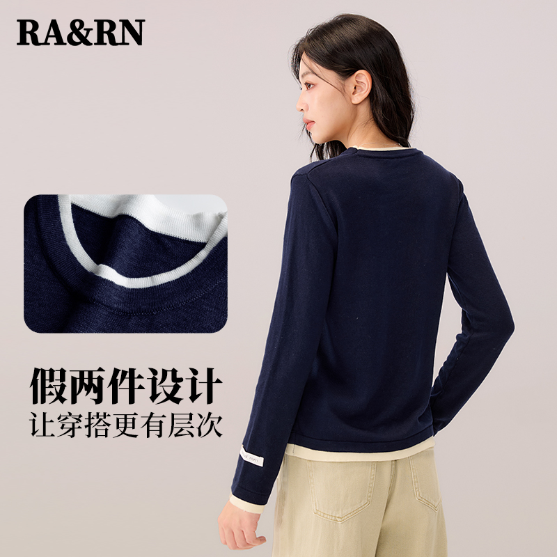 女撞色设计感毛衣气质上衣 斜肩拼接露肩针织衫 pusumede 温柔姐系
