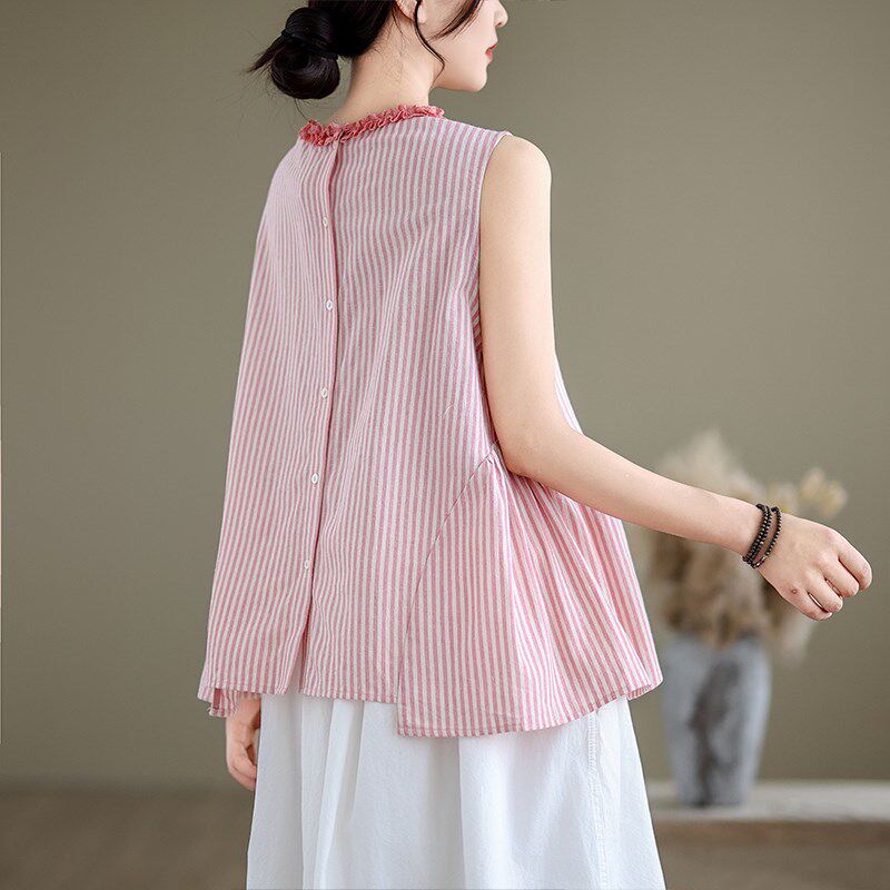 宽松休闲百搭减龄遮肉小衫 时尚 上衣潮 女夏季 文艺条纹撞色拼接小衫