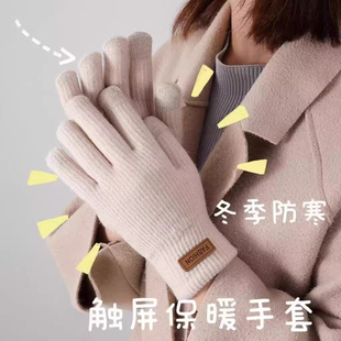 防寒手套 保暖加绒加厚毛线针织骑行男女同款 可触屏棉手套男士 冬季