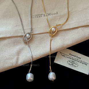 金色珍珠长款 吊坠项链女秋冬百搭高级感轻奢小众毛衣链可调节配饰
