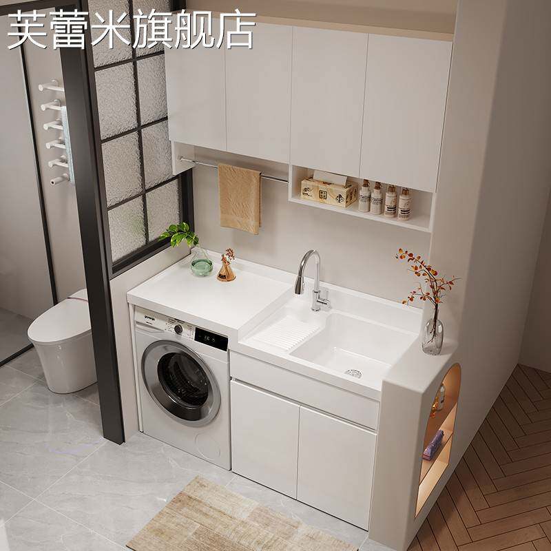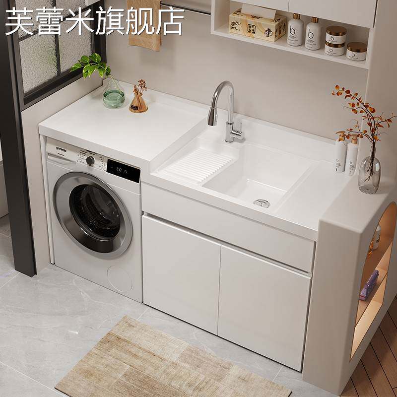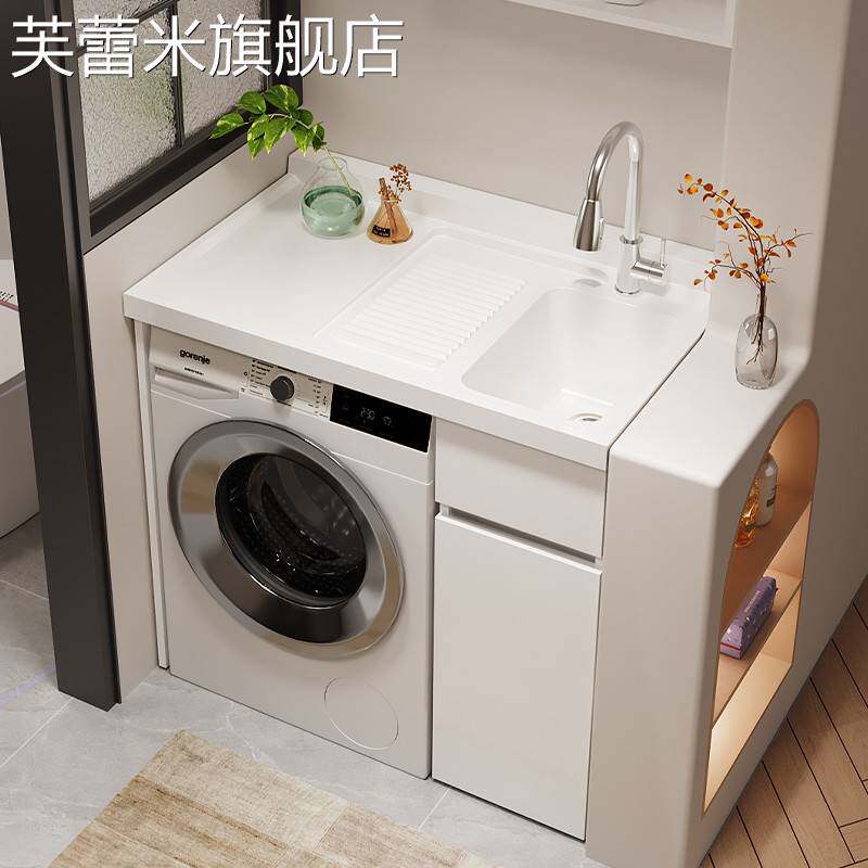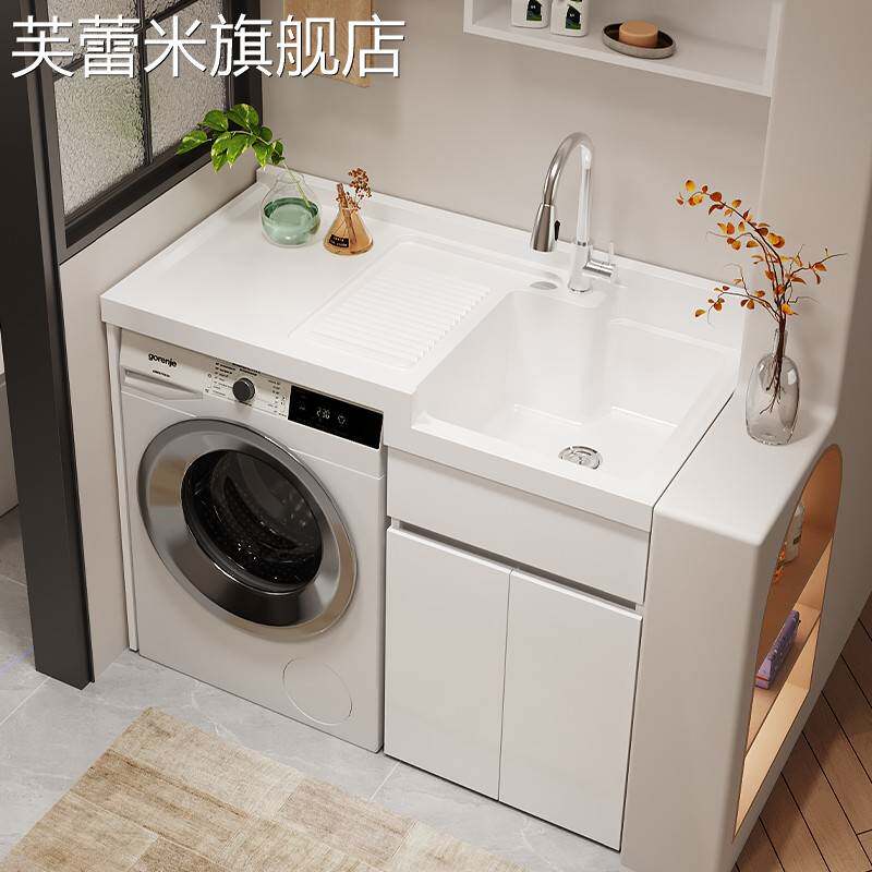 芙蕾米不锈钢洗衣柜阳台洗衣机柜滚筒伴侣一体水池带搓板浴室柜石英石盆饰品摆件垫垫