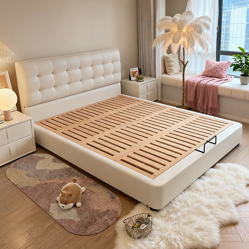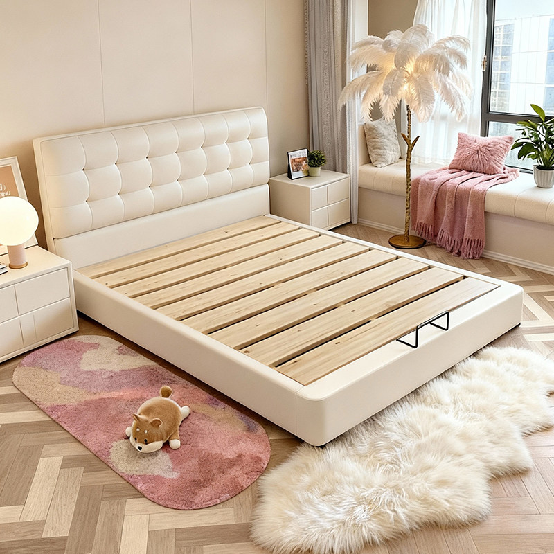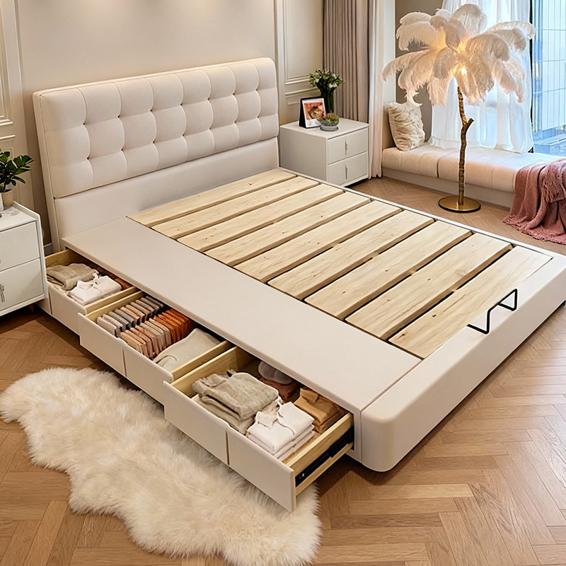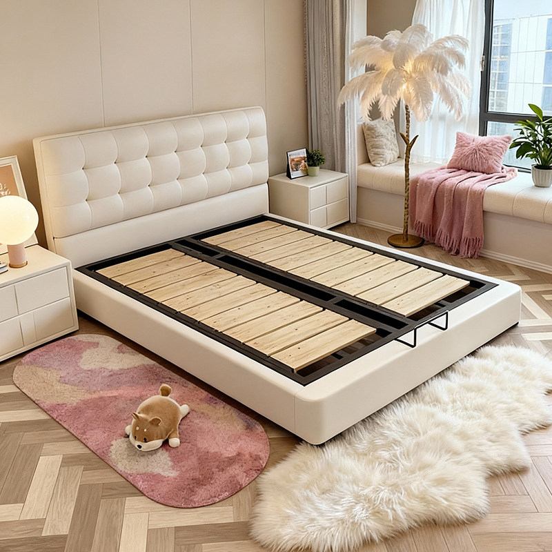 政府补贴奶油风华夫格真皮床主卧轻奢家用双人床储物双人软包婚床
