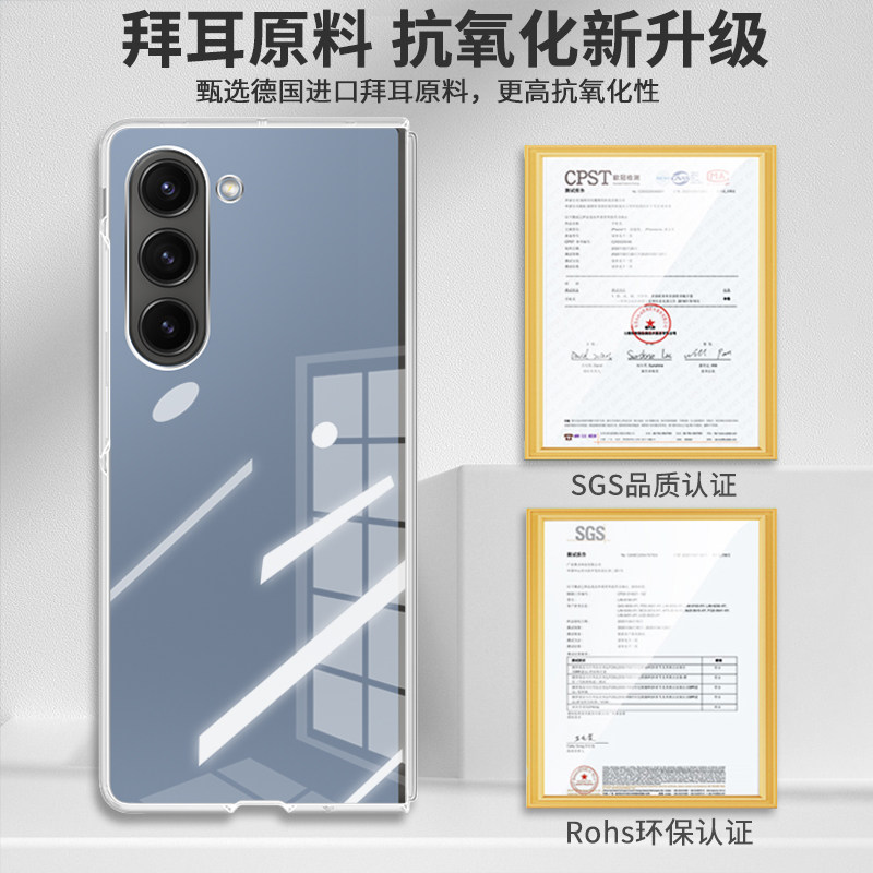 适用三星GalaxyZFold5折叠屏手机壳samsungZFold5保护套全包防摔w24新款 透明硬壳超薄简约男女心系天下后外壳