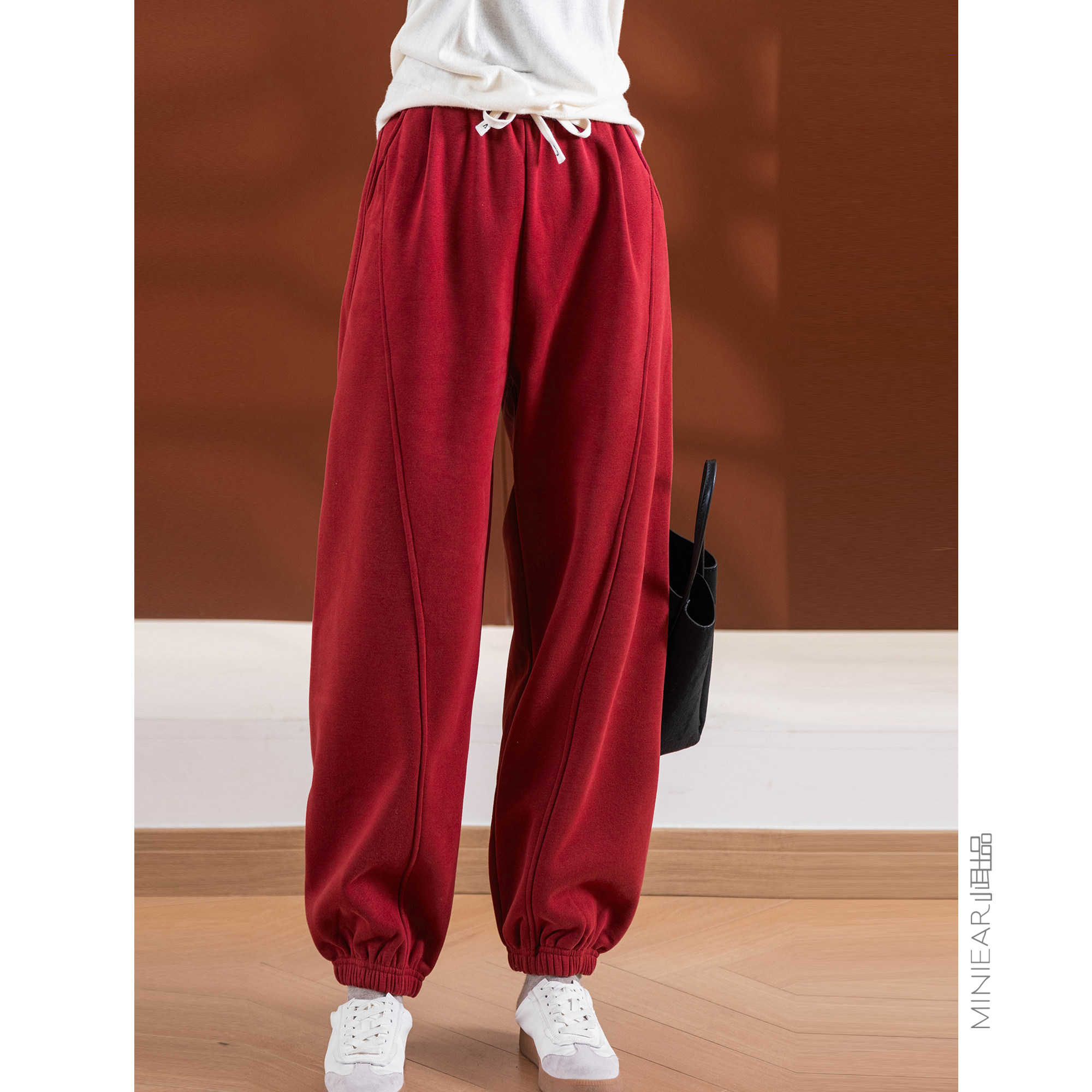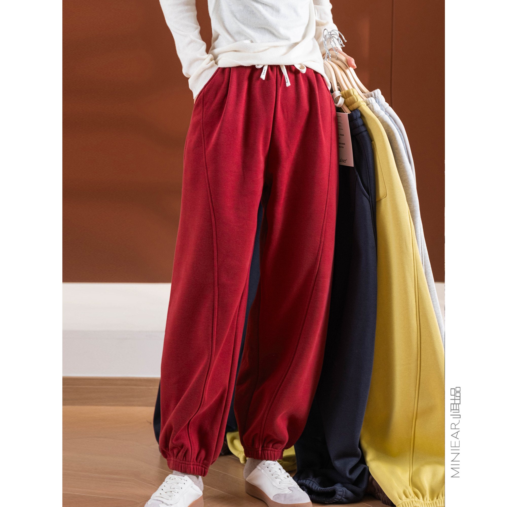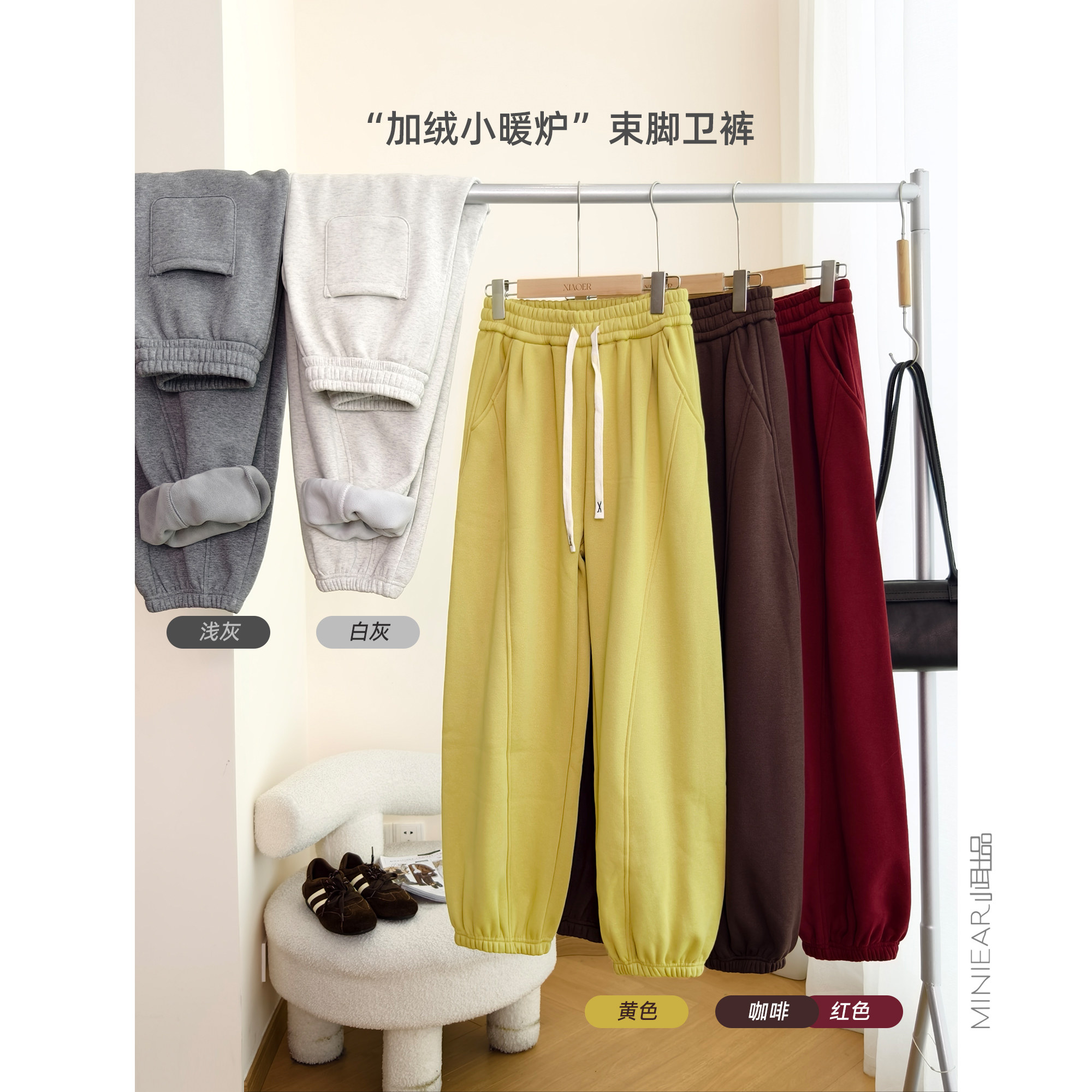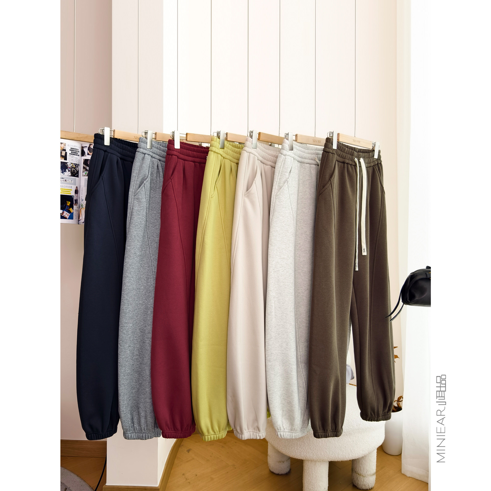 束脚休闲阔腿小个子卫裤 加绒棉裤 女秋冬2025新款 灰色羊羔绒运动裤