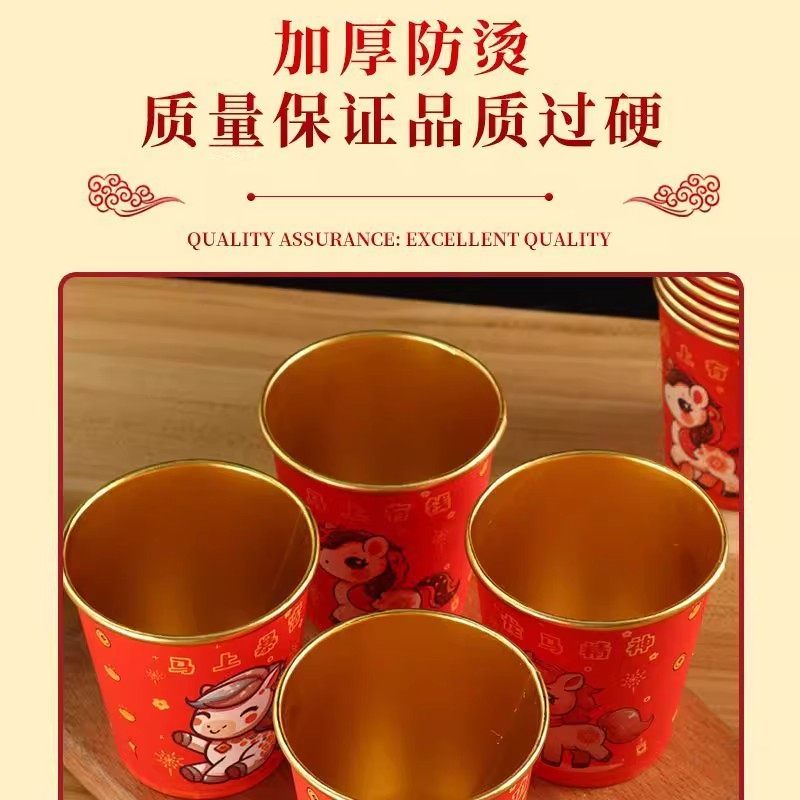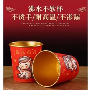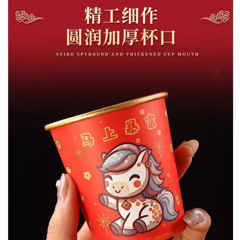 金边杯子红纸杯福字纸过年马年一次性加厚春节新年茶杯新年子2026