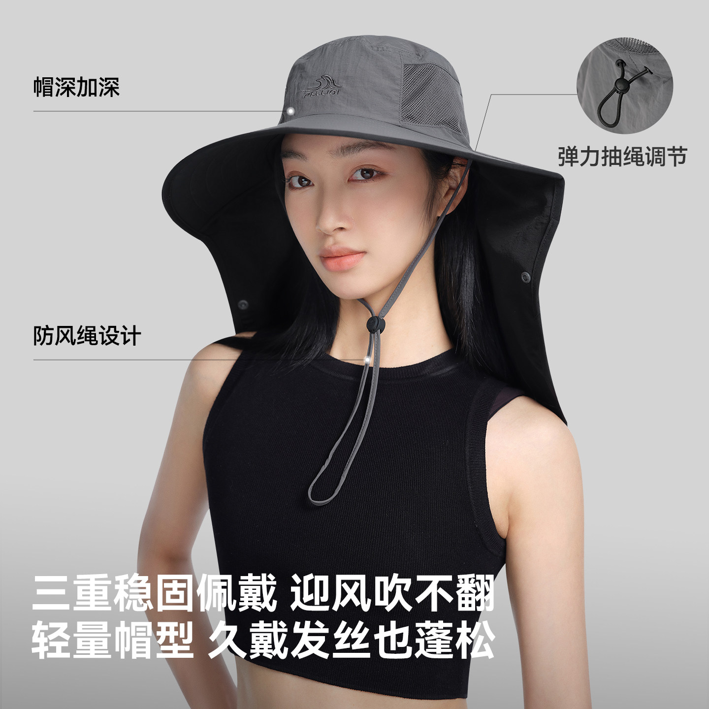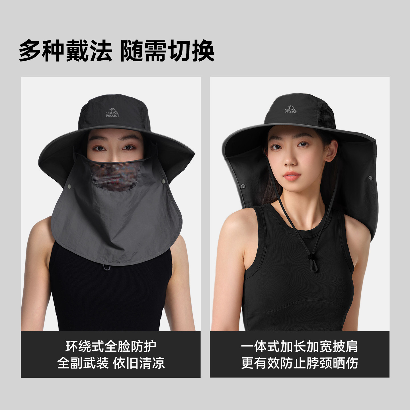 伯希和户外防晒帽大帽檐男全方位面罩护颈一体登山徒步渔夫帽子女