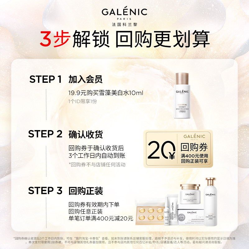 20元 祛斑美白保湿 科兰黎雪藻美白水10ml试用装 回购券 顺手买