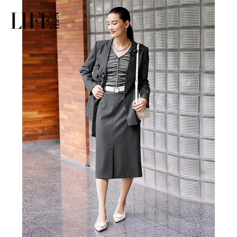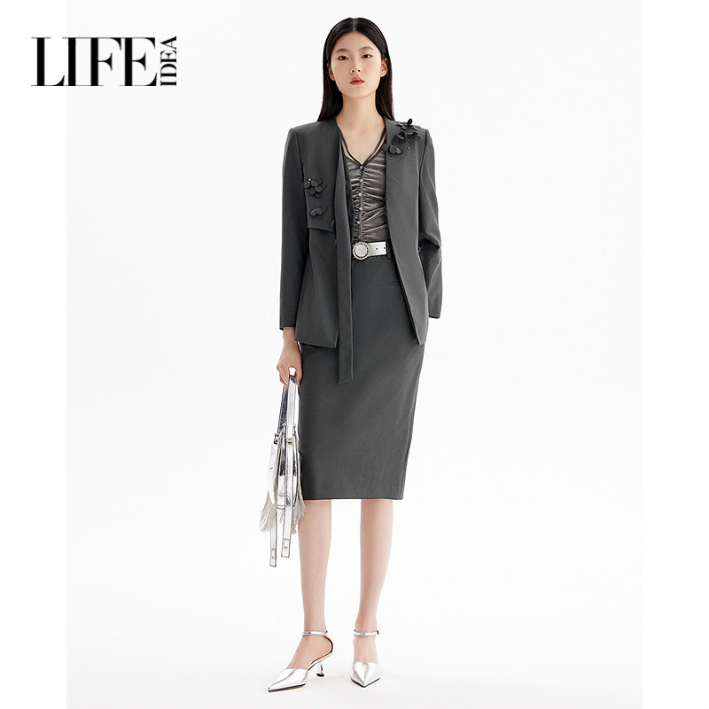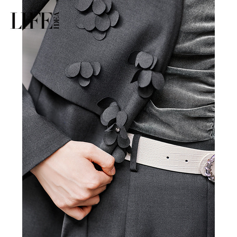 外套女优雅气质通勤OL风外套 精致百搭胸花西装 莱芙艾迪儿时尚 个性