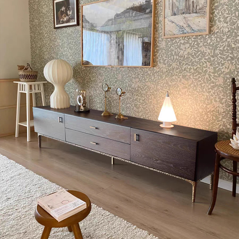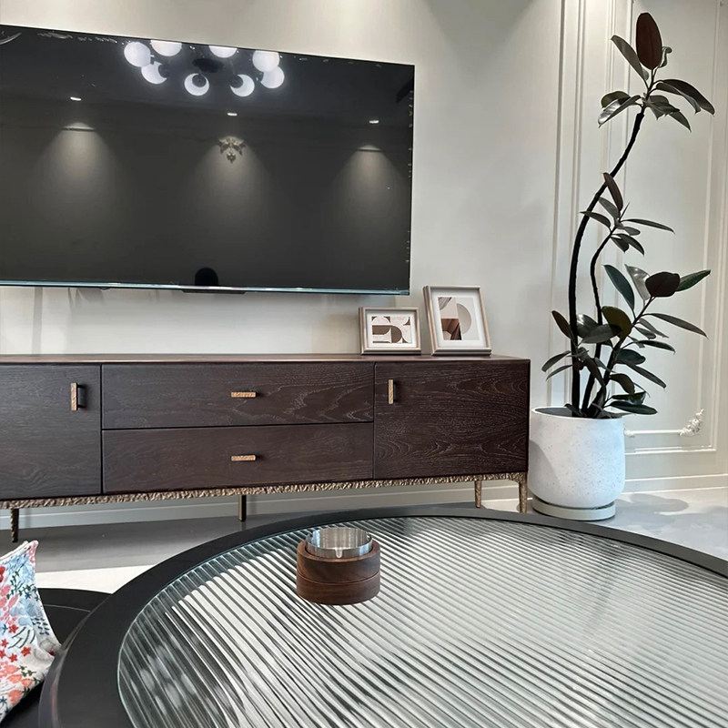 三梦骨骼线电视柜落地中古风小户型2025新款 客厅胡桃实木电视机柜
