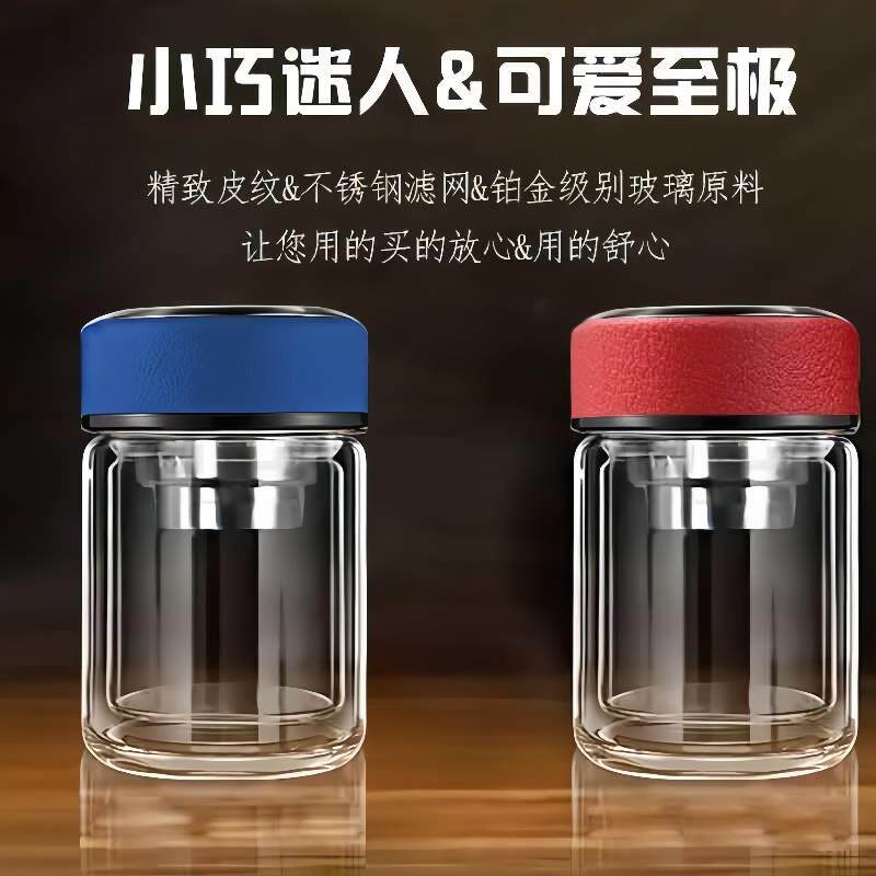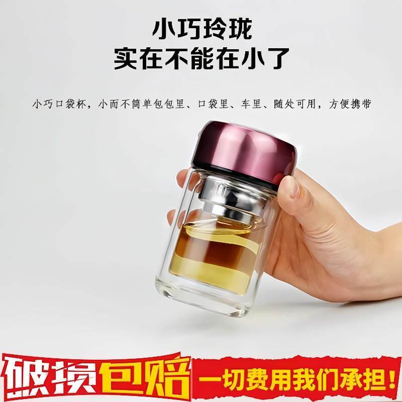 德国高档口袋杯子210ml女士便携双层隔热玻璃杯迷你泡茶水杯小巧