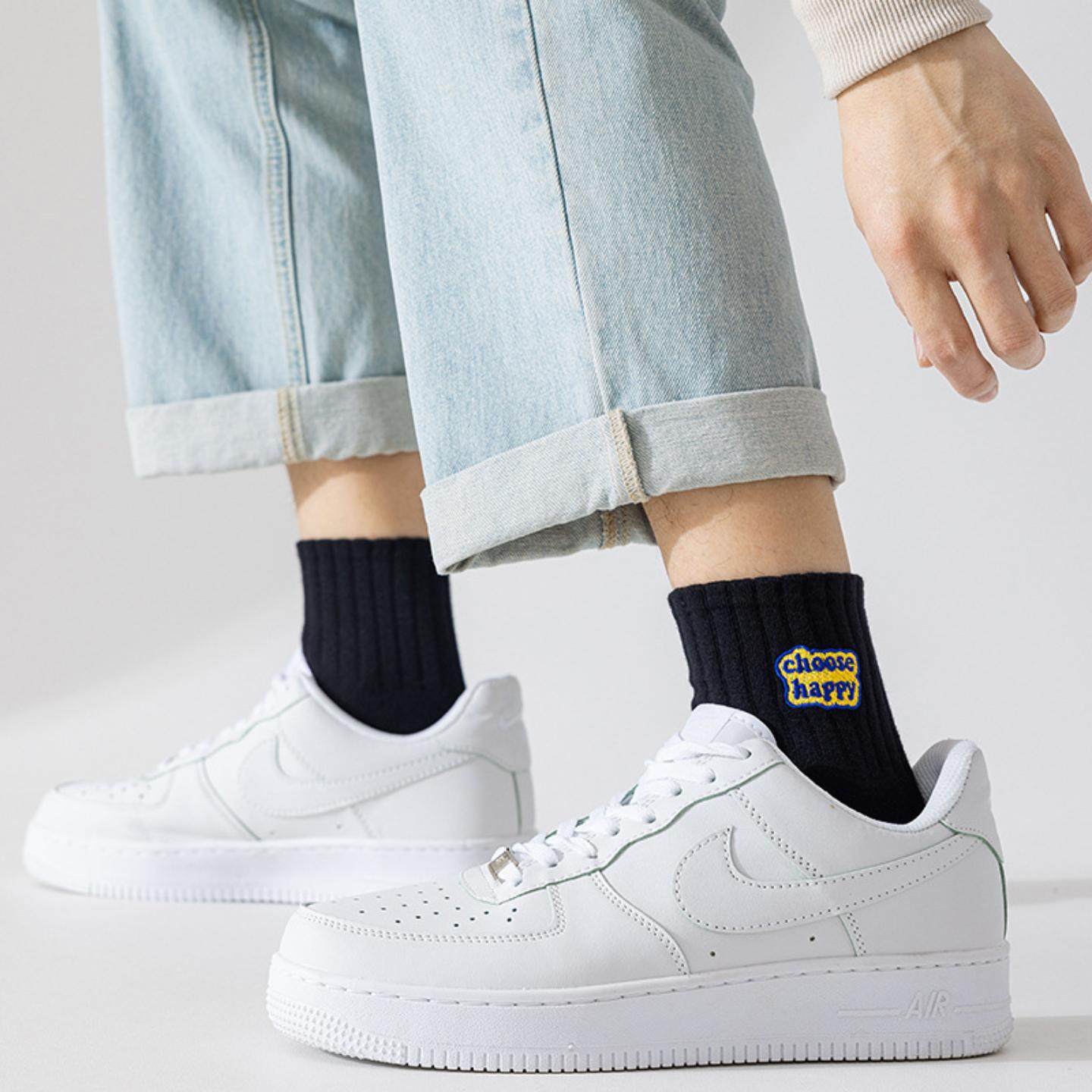 抗菌袜子男女黑白中筒袜四季 纯色运动袜吸汗防臭潮流透气袜