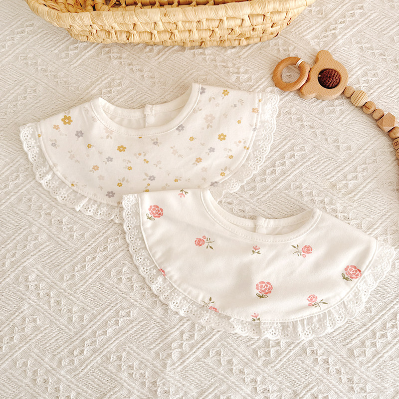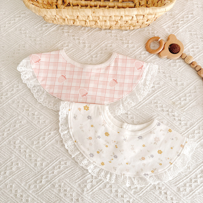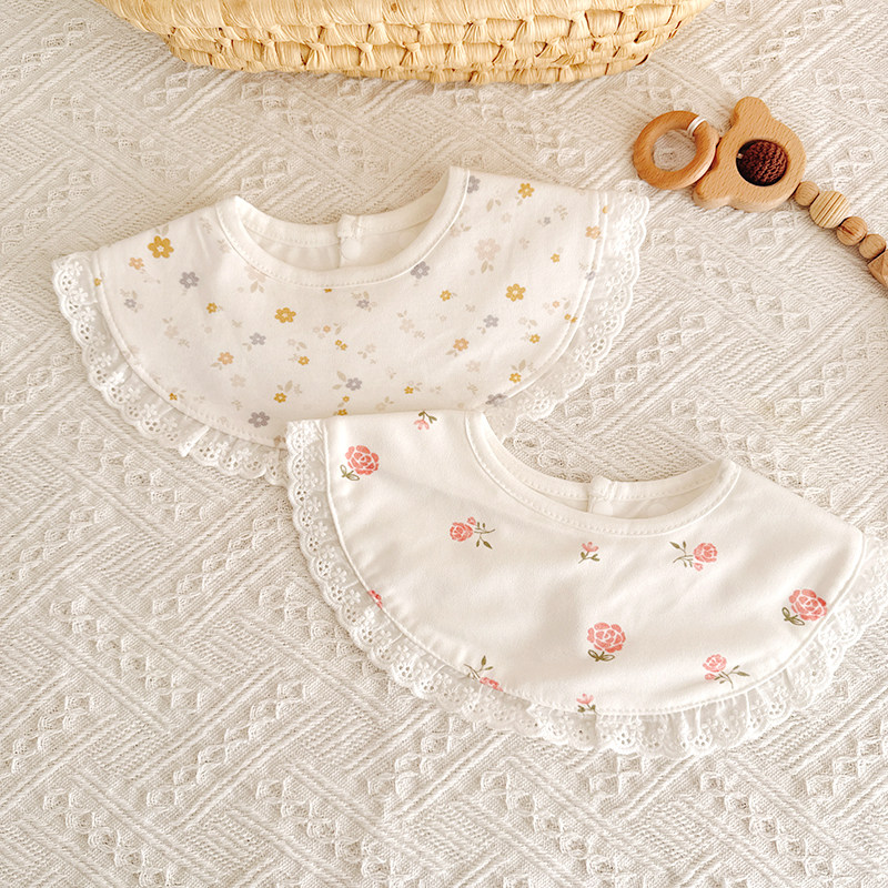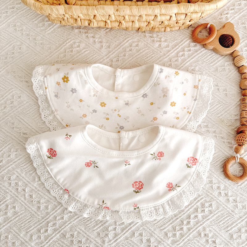 新生儿蕾丝花边防水口水巾婴儿宫廷风双层围嘴宝宝纯棉防吐奶围兜