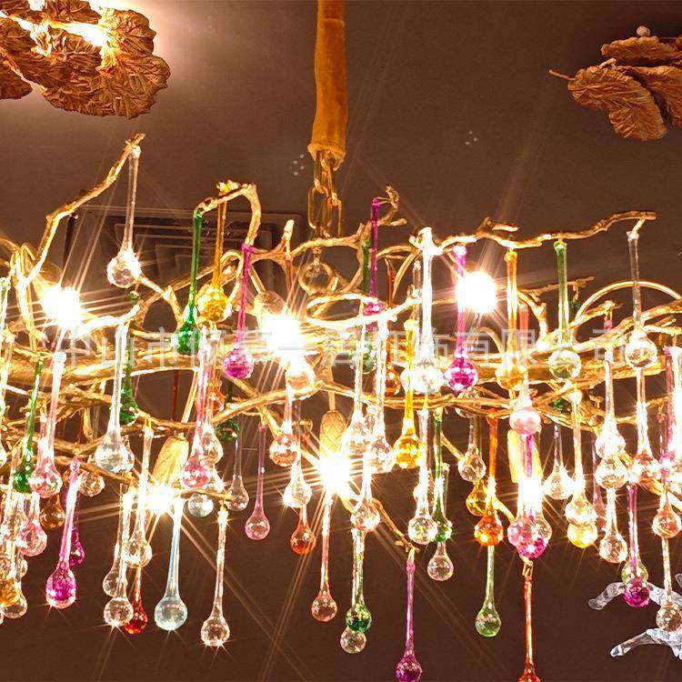 2025新款 修艺术水滴设计 H65铜吊灯轻奢餐厅灯书房自然树枝吊灯装