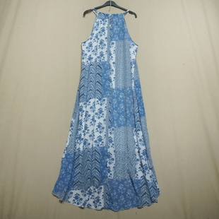 波西米亚风无袖 裙子 棉绸印花连衣裙女夏度假风长裙显瘦高级感无袖
