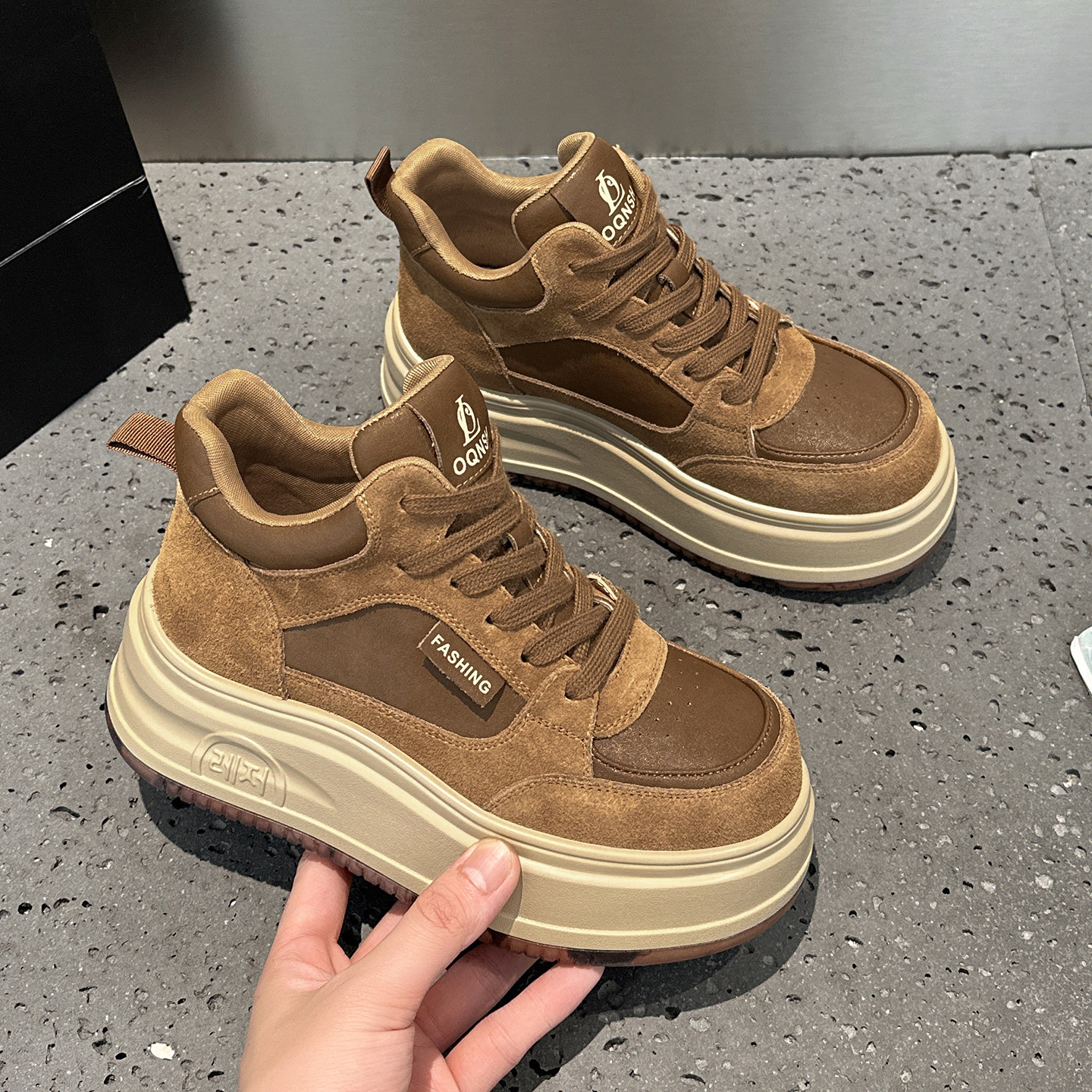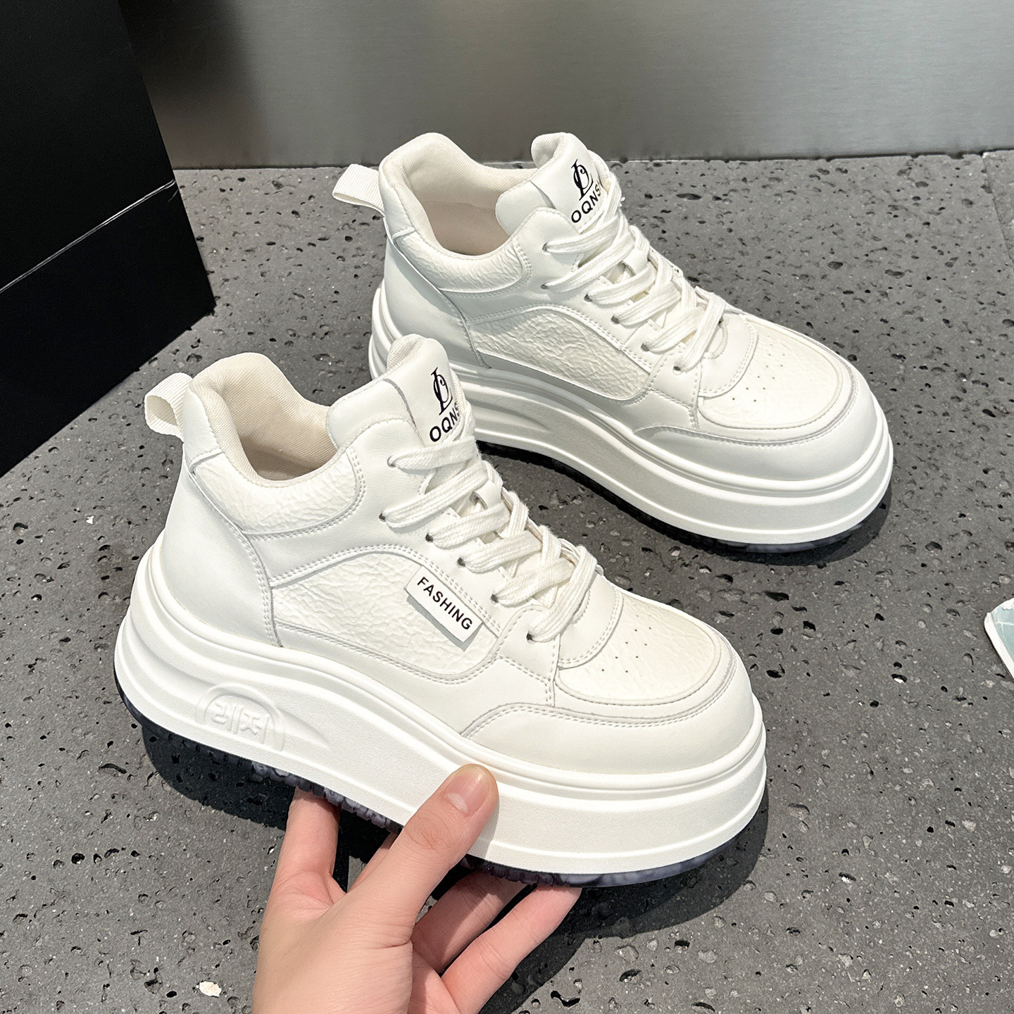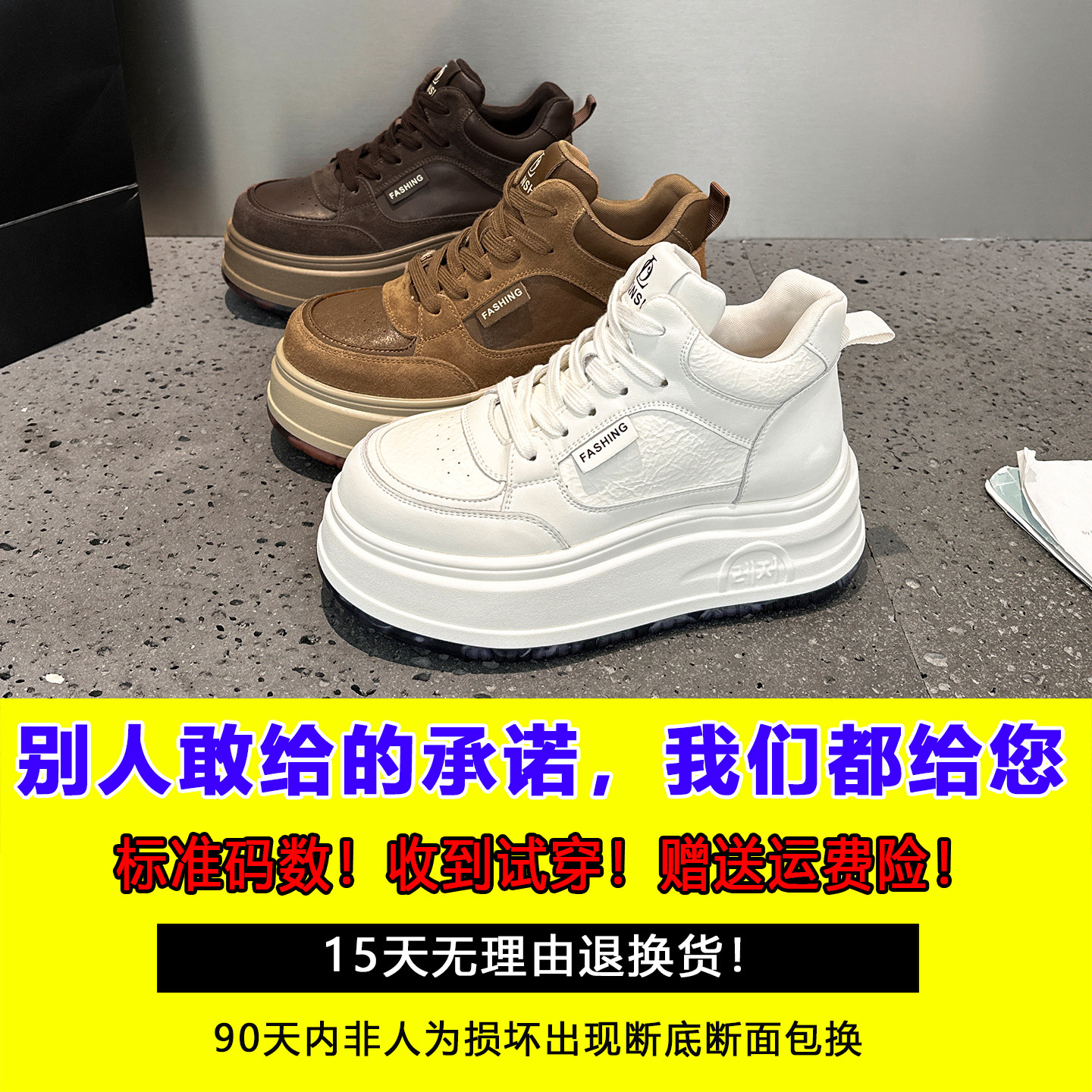 二棉厚底增高休闲板鞋 百搭秋冬季 女2025新款 欧洲站高帮加绒小白鞋