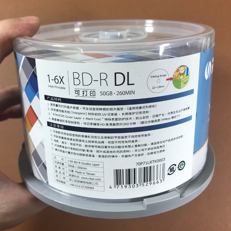 光碟可代刻 DL防水可打印光盘BDR50空盘 台产BD50G蓝光刻录盘BD