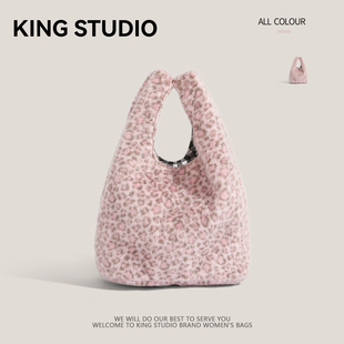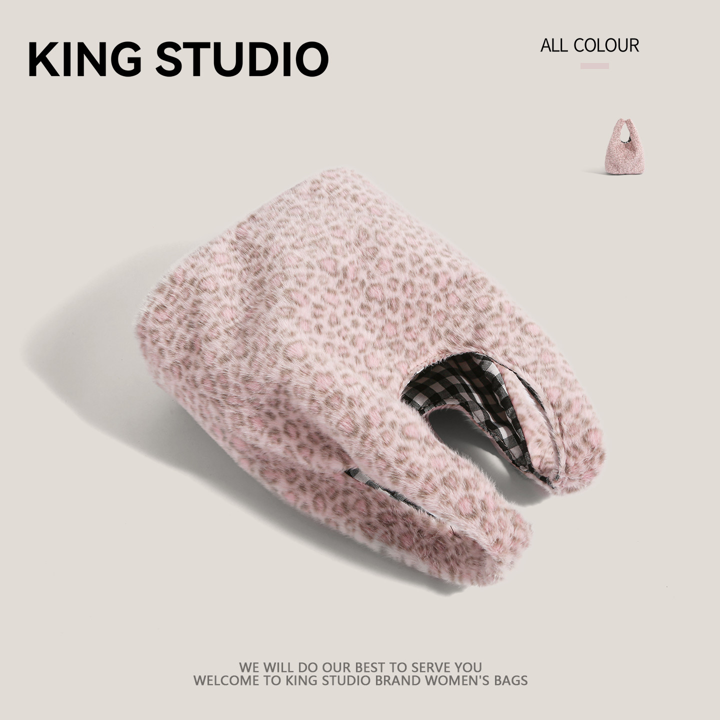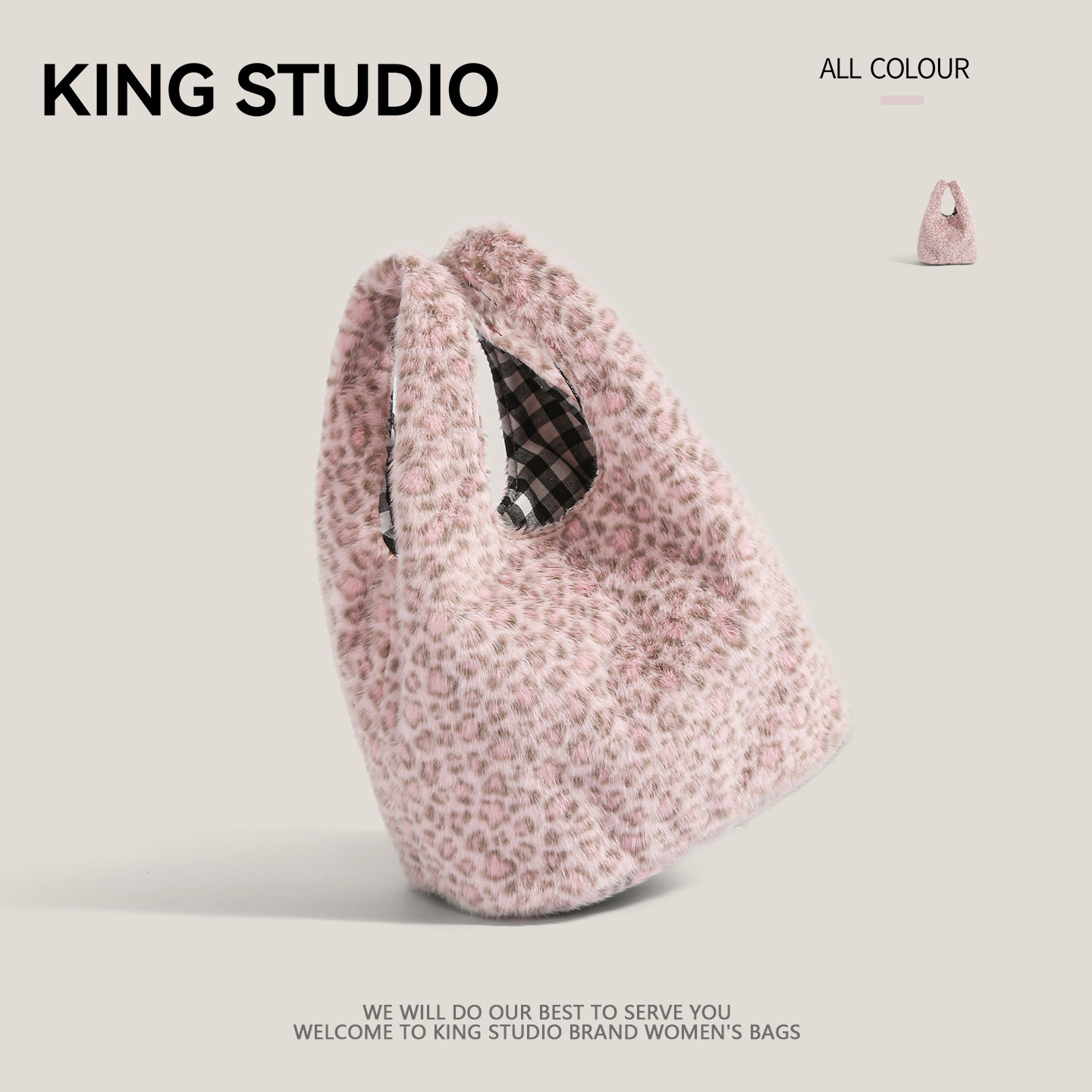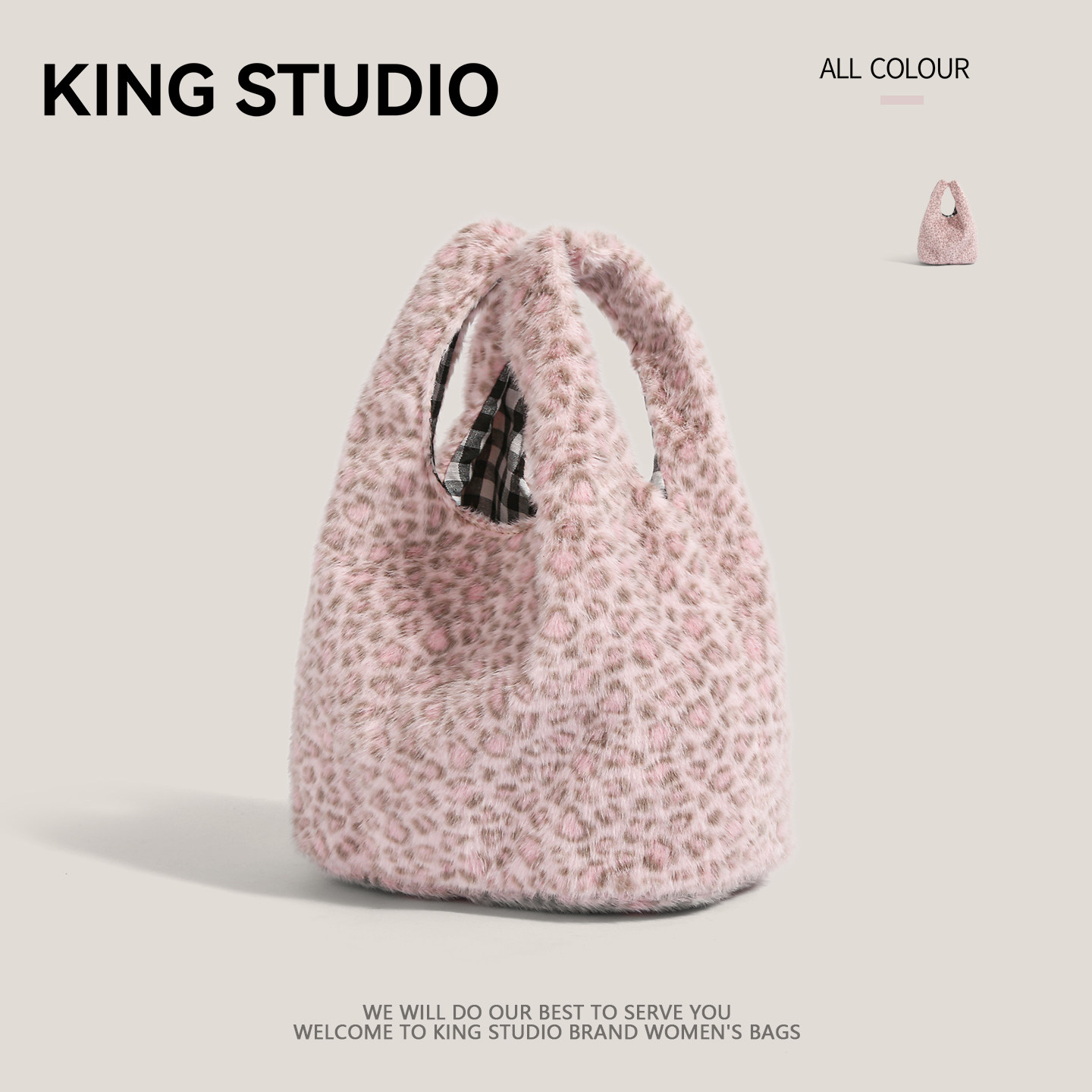 秋冬紫色豹纹手提包新款 毛绒通勤休闲手腕包上班杂物外出手拎小包