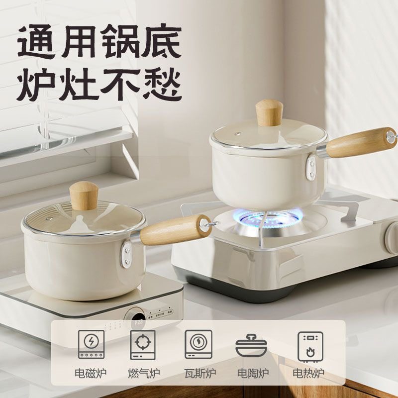 雪平锅宝宝辅食锅婴儿煎煮一体小奶锅一人用煮泡面汤锅家用不粘锅