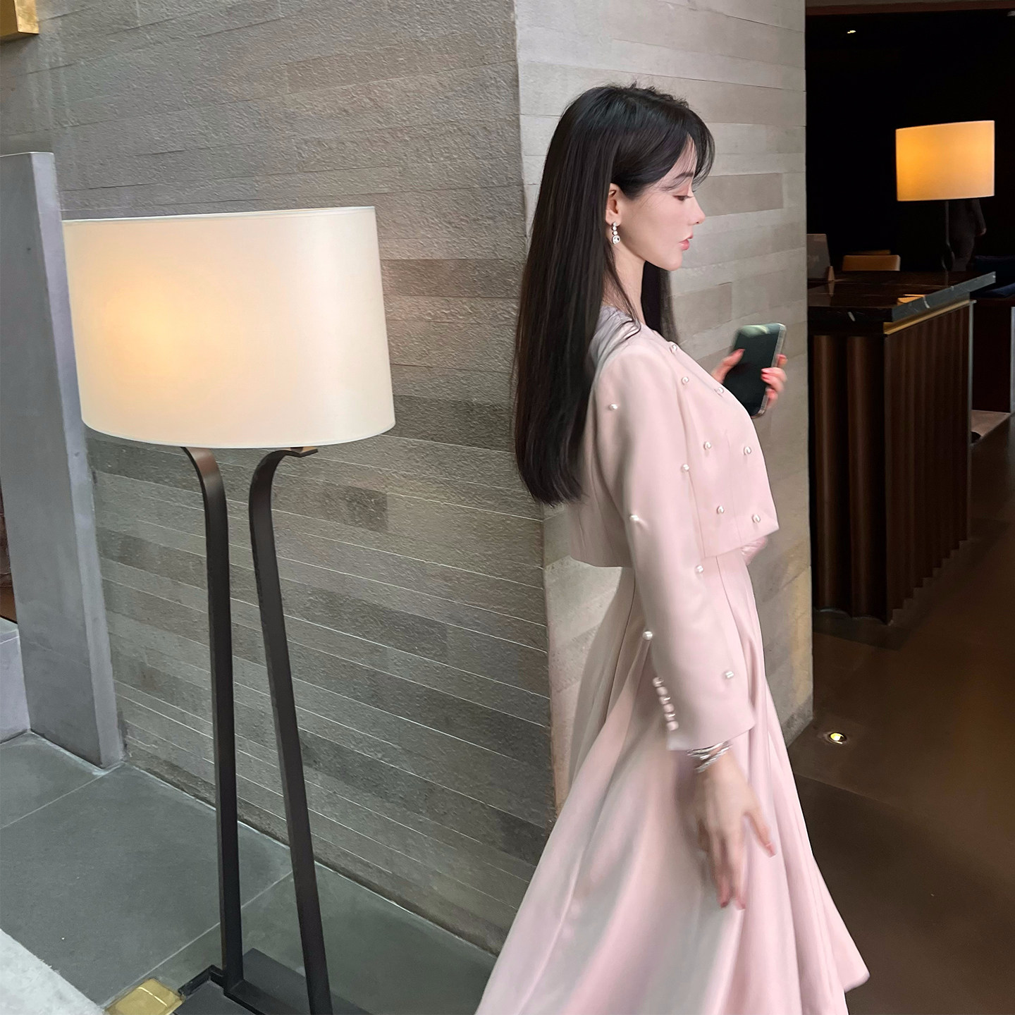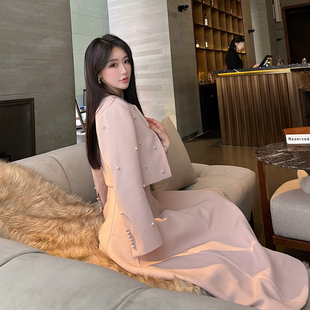 洋房珍珠 掐腰大裙摆套装 高知韩女 外套 裙 珍珠西装 熊熊屋