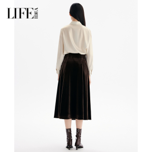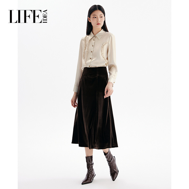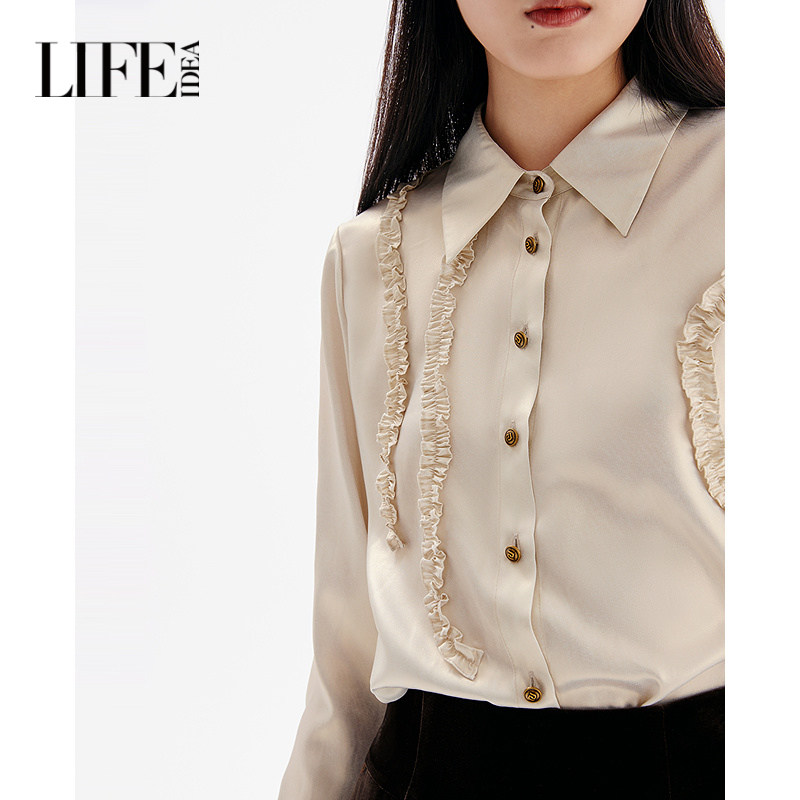 莱芙艾迪儿法式 女甜美木耳边设计感简约百搭上衣 复古光泽感衬衫