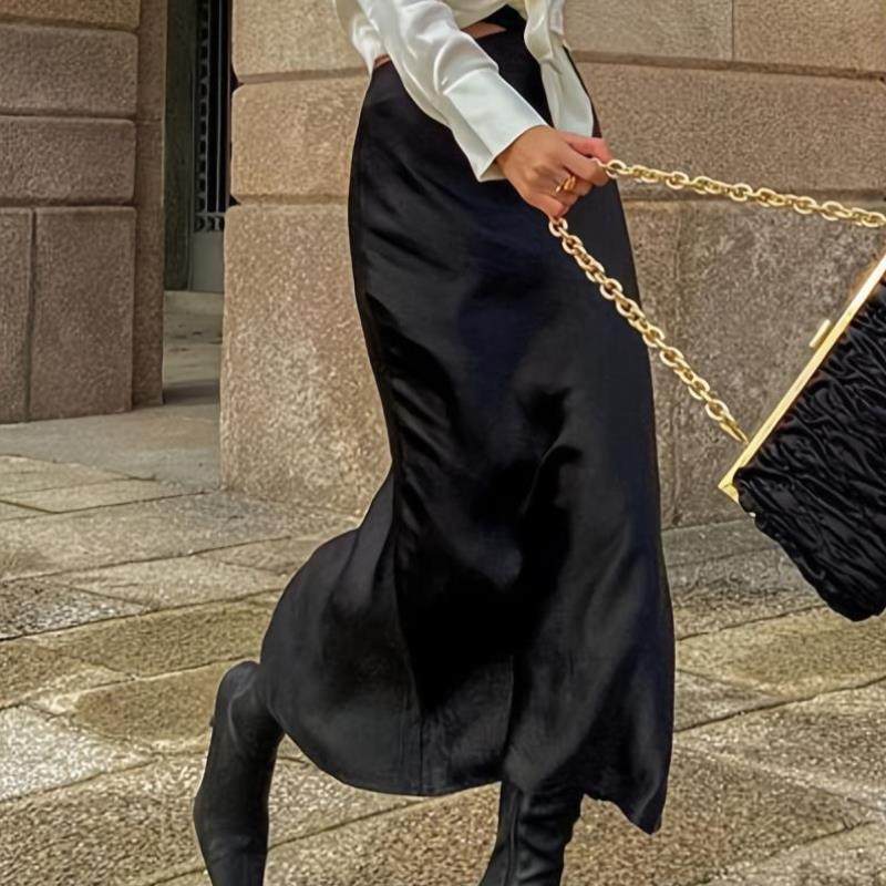 Line Women Waisted for Skirt Maxi Satin 1pc High Elegant