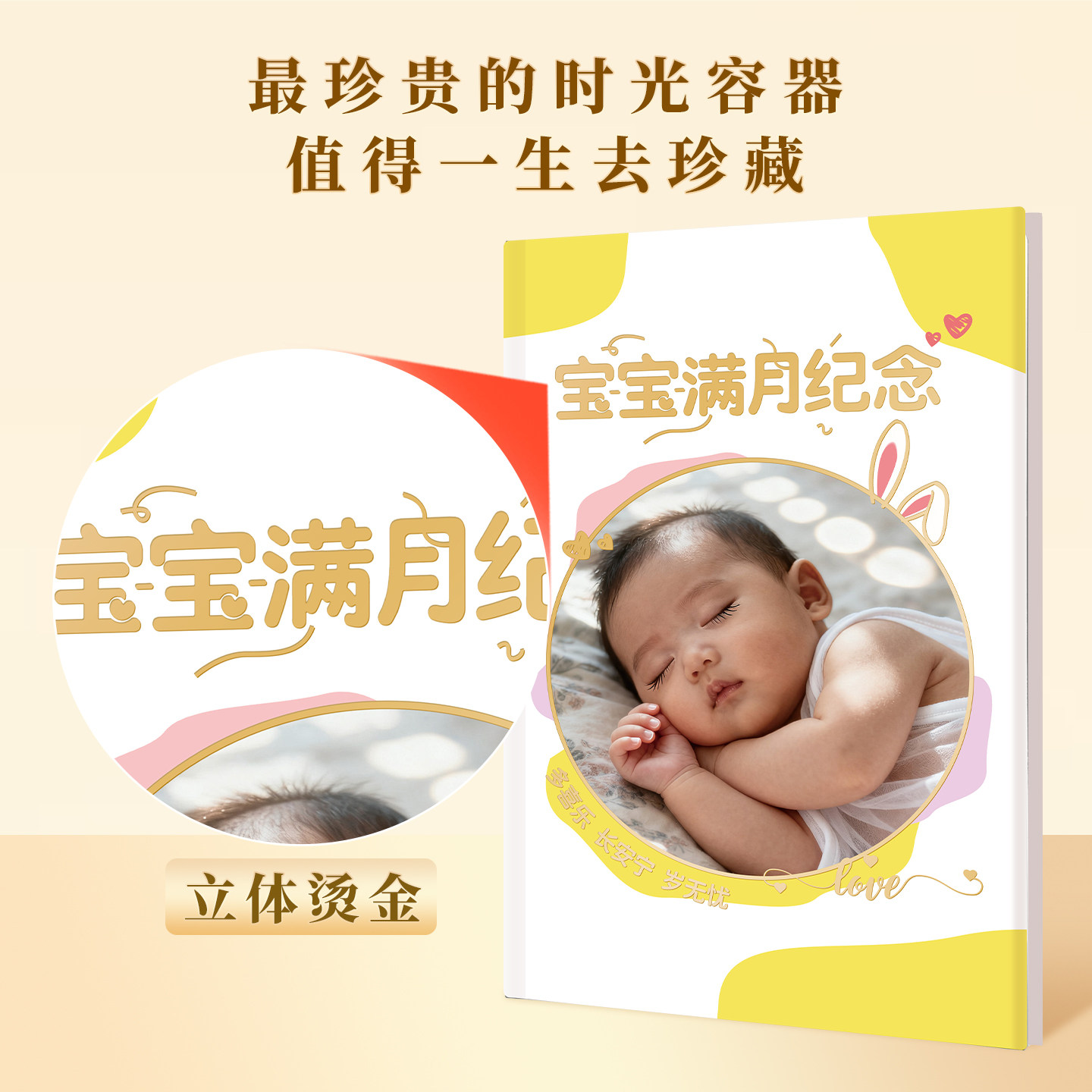 宝宝满月纪念册相册照片书立体烫金婴儿成长记录册定制