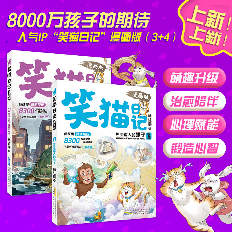 猴子能闻出孩子味儿 JXWH 笑猫日记漫画版 15岁笑猫日记JST 适读7 乌龟杨红樱儿童文 猫想变成人 阴谋塔顶上 保姆狗 4册
