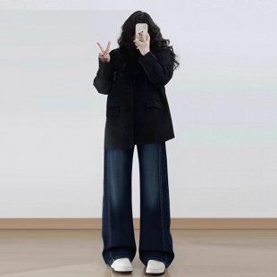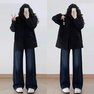 女装 胖mm裤 蓝色高腰弹力微喇牛仔裤 梨形报恩裤 子 女2026春季 特大码