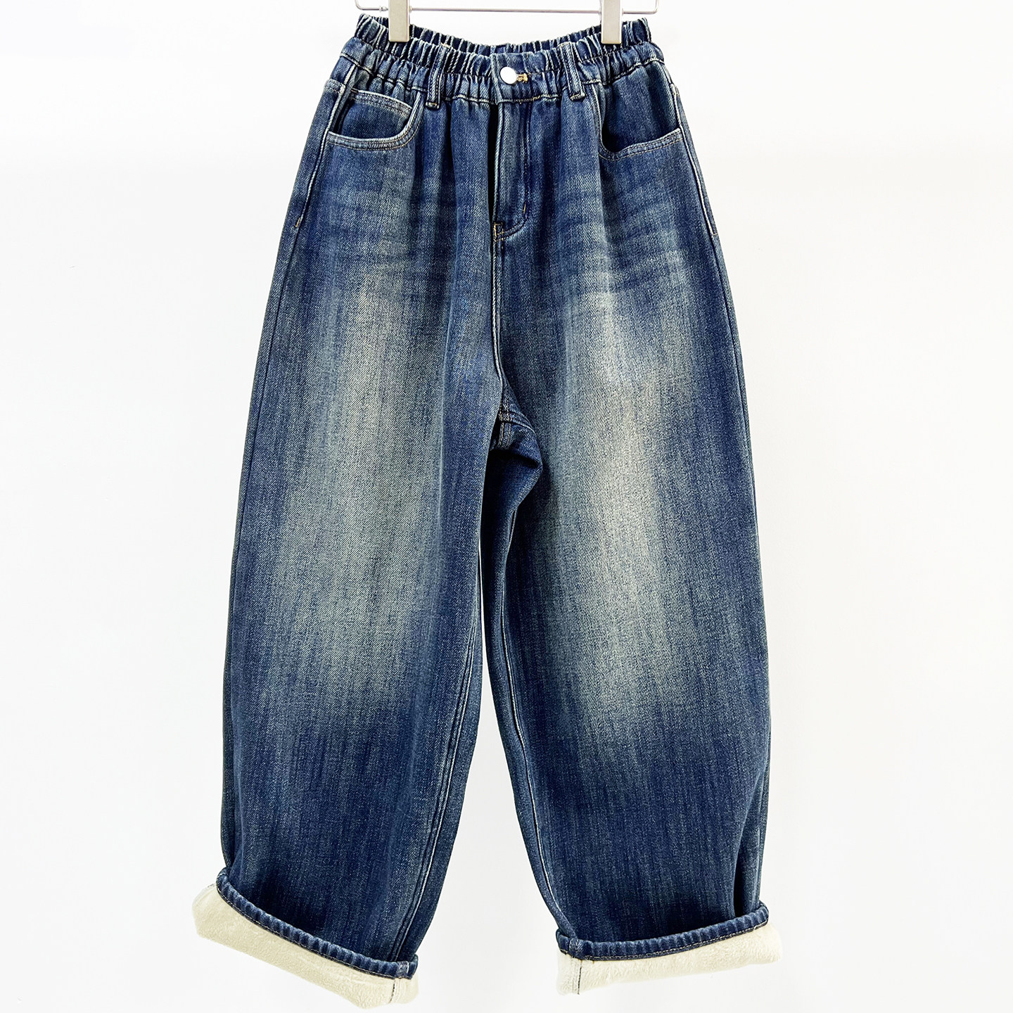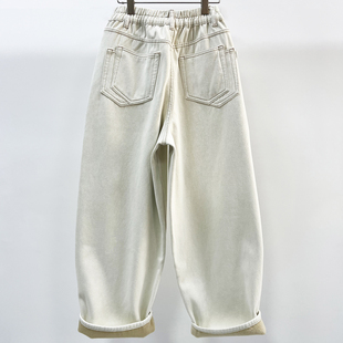 女冬设计感宽松显瘦厚绒长裤 Omang桃喜 小个子加绒保暖直筒牛仔裤