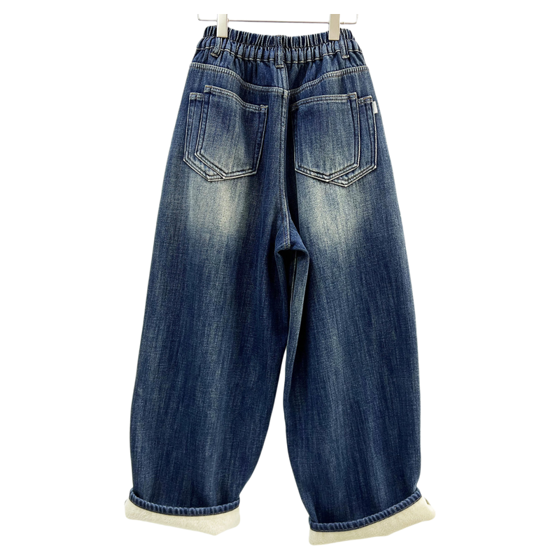 宽松显瘦深蓝色阔腿裤 新款 子 女2025年冬季 逸阳加绒加厚直筒牛仔裤
